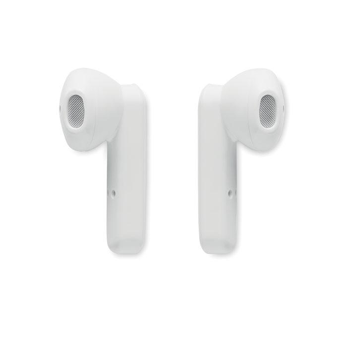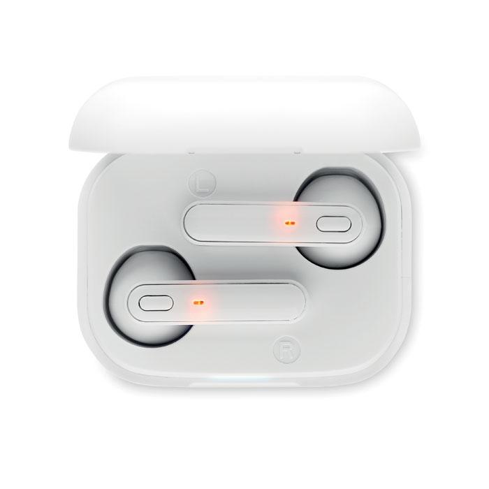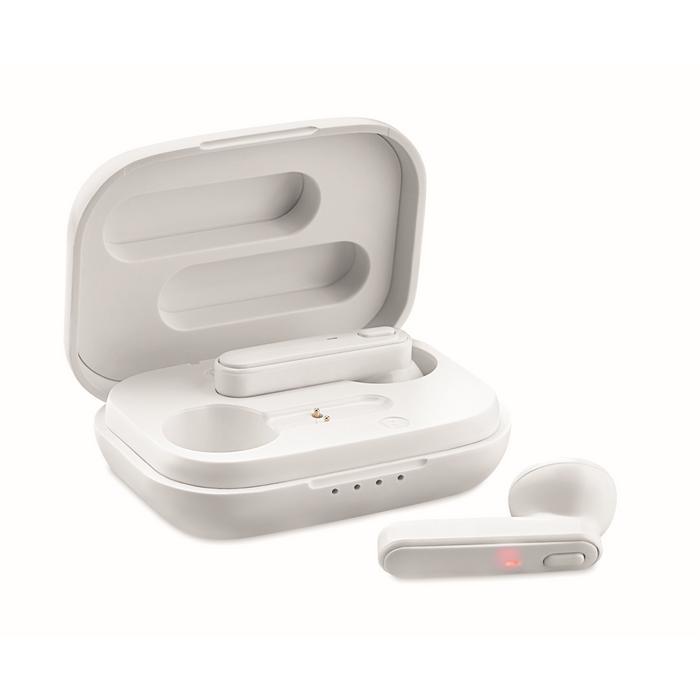 Jeu de 2 écouteurs True Wireless Stereo (TWS) 5.3 avec microphone et batterie de 30 mAh intégrée. Autonomie d'environ 3 heures. Appairage automatique. Comprend un câble de chargement micro USB et une station de chargement de 185 mAh.