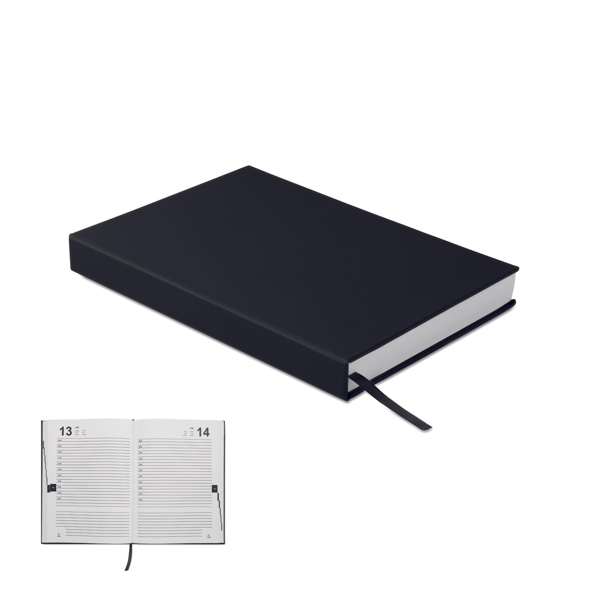 Agenda A5 perpétuel en polyester post-consommation recyclé à 60 % et couverture en PU à 40 %. 416 pages universelles en papier recyclé 70gsm (208 feuilles). Marque page en polyeste...