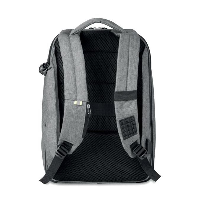 Sac à dos polyester 600D 2 tons avec chargeur solaire intégré et port USB. Temps charge env. 6h au soleil. 2 compartiments principaux (pour PC 13''). Poches intérieures. Dos et bretelles matelassées.