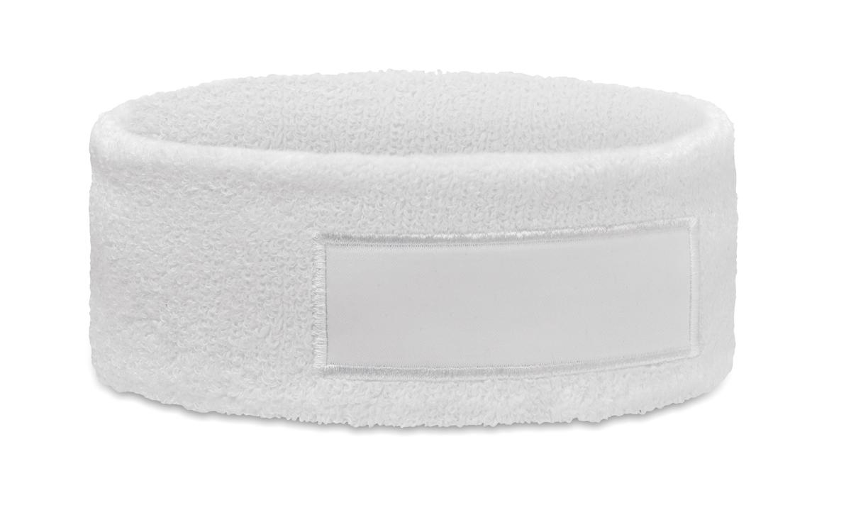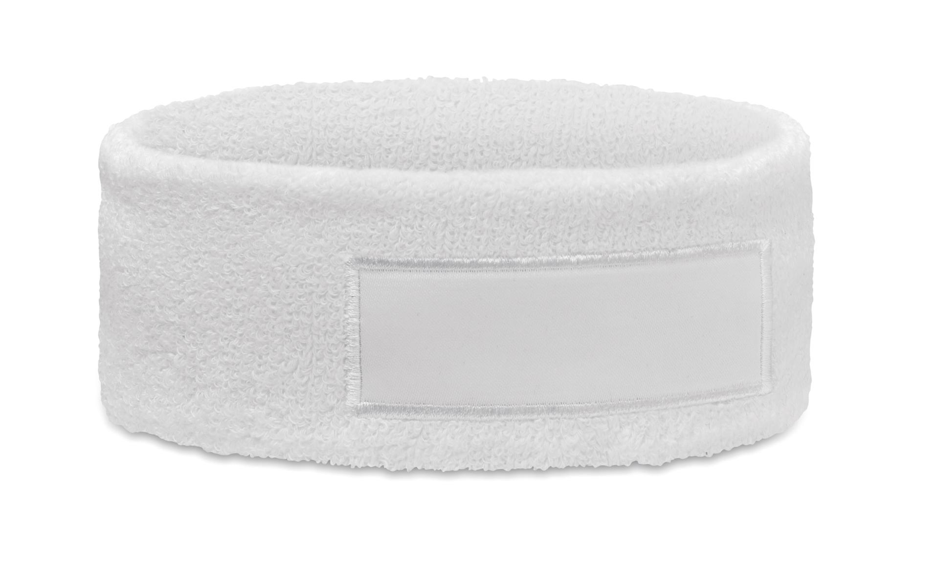 Bandeau en polycoton (79% coton/13% élasthanne/8% polyester) avec patch en coton pour la zone d'impression.