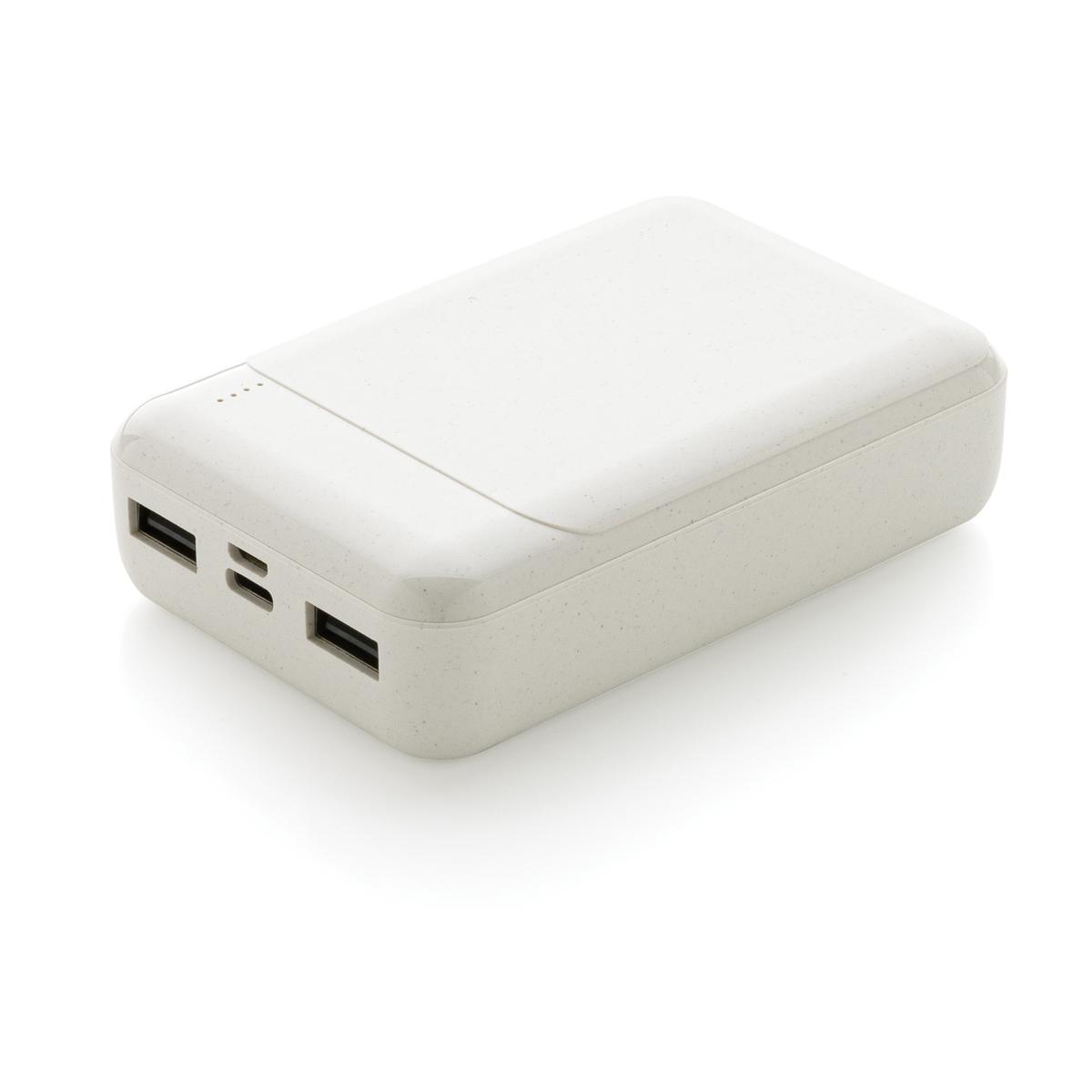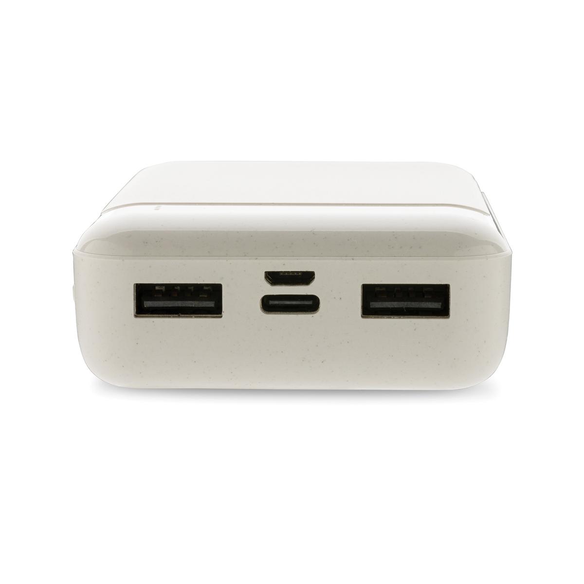 Powerbank 10.000 mAh dont le boîtier est fabriqué en plastique ABS recyclé certifié RCS. RCS (Recycled Claim Standard) est une norme permettant de vérifier le contenu recyclé d'un produit tout au long de la chaîne d'approvisionnement. Contenu recyclé total : 15% sur la base du poids total de l'article. Le powerbank contient une batterie au lithium-polymère haute densité de qualité A de 10 000 mAh. Les indicateurs d'alimentation indiquent le niveau d'énergie restant pour que vous sachiez toujours quand recharger. Entrée Micro USB 5V/2A ; Entrée Type-C 5V/2A ; Sortie USB 5V/2A ; Article et accessoires sans PVC. Comprend un câble de chargement en TPE recyclé sans PVC.