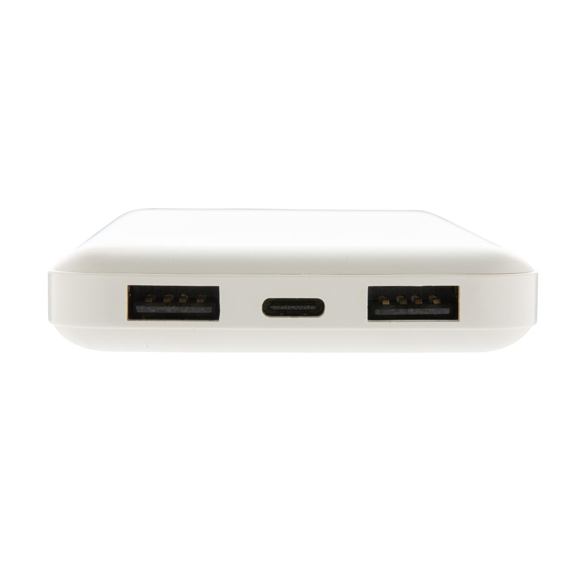 Powerbank ultra-compact de 10.000 mAh en ABS léger qui se glisse dans votre poche et vous permet de l'emporter partout avec vous. Avec double port USB. Les indicateurs de puissance indiqueront le niveau d'énergie restant pour que vous sachiez toujours quand recharger. Entrée 5V / 2A. Sortie USB 1: 5V / 2A Sortie USB 2: 5V / 1A