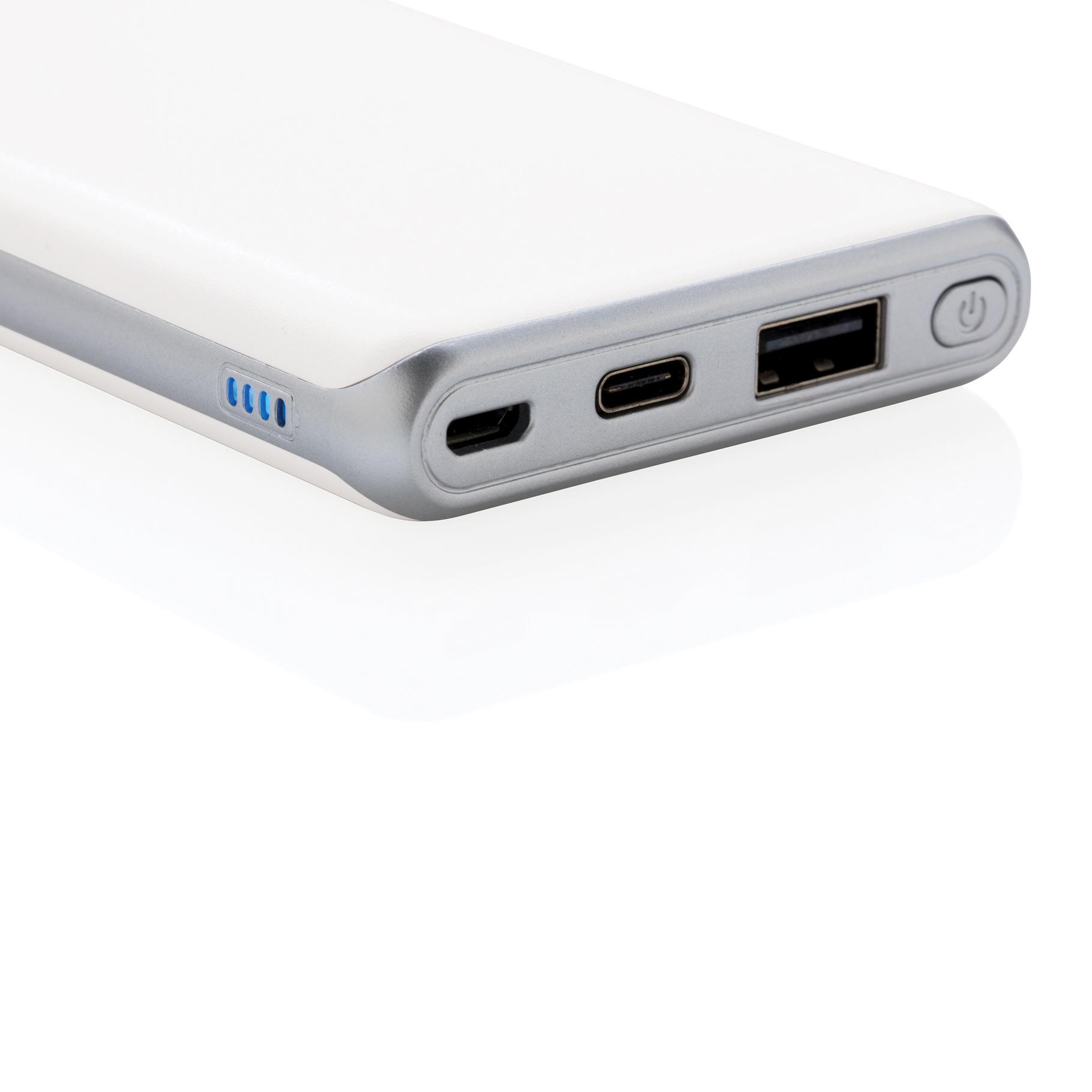 Powerbank 10000 mAh en ABS qui offre la charge la plus rapide possible. Avec port type C pour charger (Power Delivery) les iphones ou MacBook(max 18W) et USB standard. Entrée Micro USB : 5V/2A. Sortie USB : 5V/3A 9V/2A 12V/1.5 A. Entrée de type C : 5V/2A 9V/2A. Sortie de type C : 5V/3A 9V/2A 12V/1.5A.