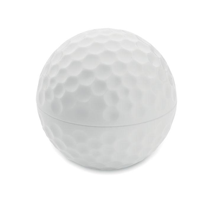 Baume à lèvres en ABS en forme de balle de golf. SPF10. Goût : Vanille.