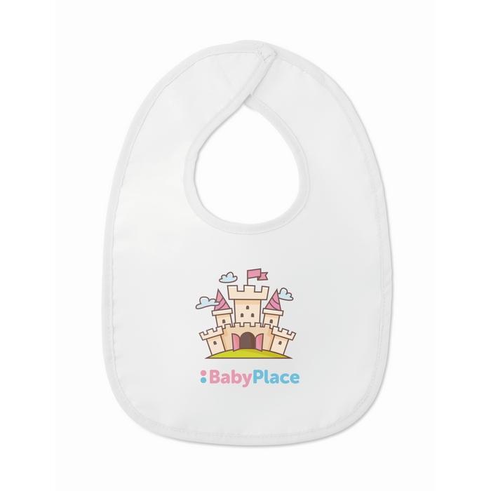 Bavoir pour bébé en poly coton et PEVA, fermeture par scratch.