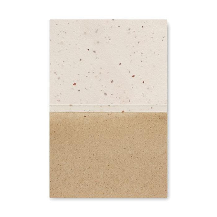 Bloc-notes adhésives Grow Me écologique. Couverture en papier contenant des graines de fleurs sauvages. Bloc-notes adhésives de 50 feuilles de papier d'herbe. Après avoir noté vos idées sur la dernière feuille, plantez la couverture et regardez-la se transformer en un massif de fleurs sauvages. Fabriqué en Europe.