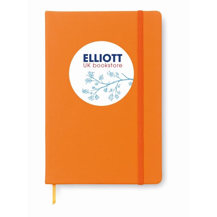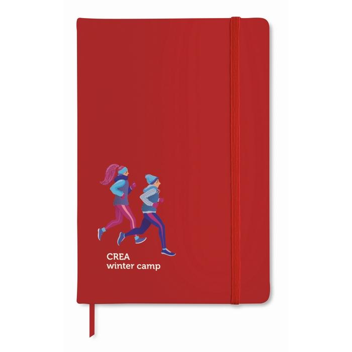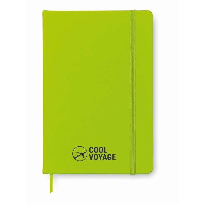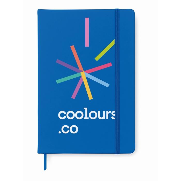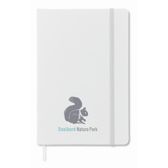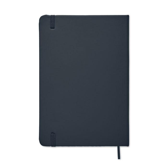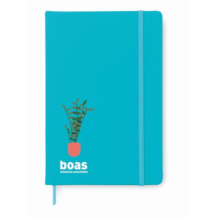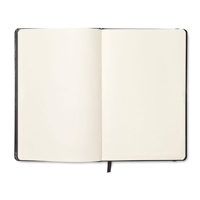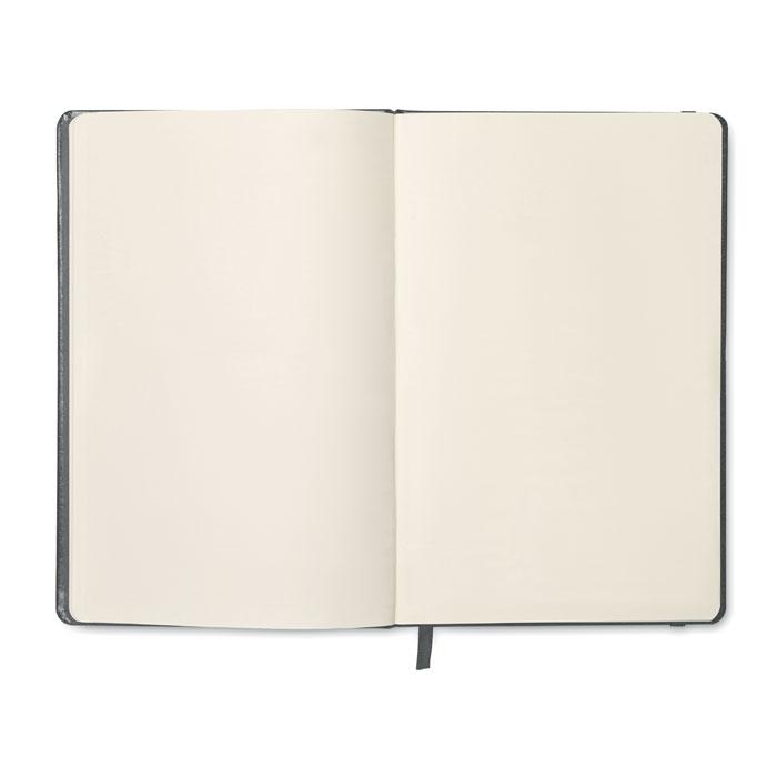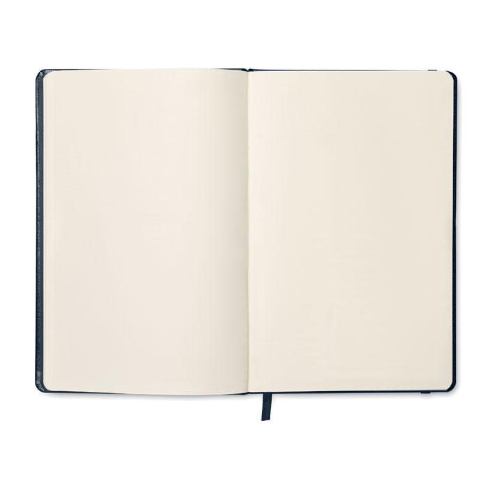 Carnet A5 avec couverture rigide en PU. 192 pages unies (96 feuilles). Bande élastique de fermeture et ruban marque-page assortis.