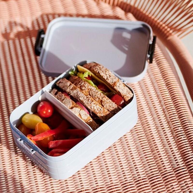 Lunchbox de 1.5L faite en Europe. Matière : ABS 100 % sans BPA. Avec un séparateur amovible. Passe au lave vaisselle.