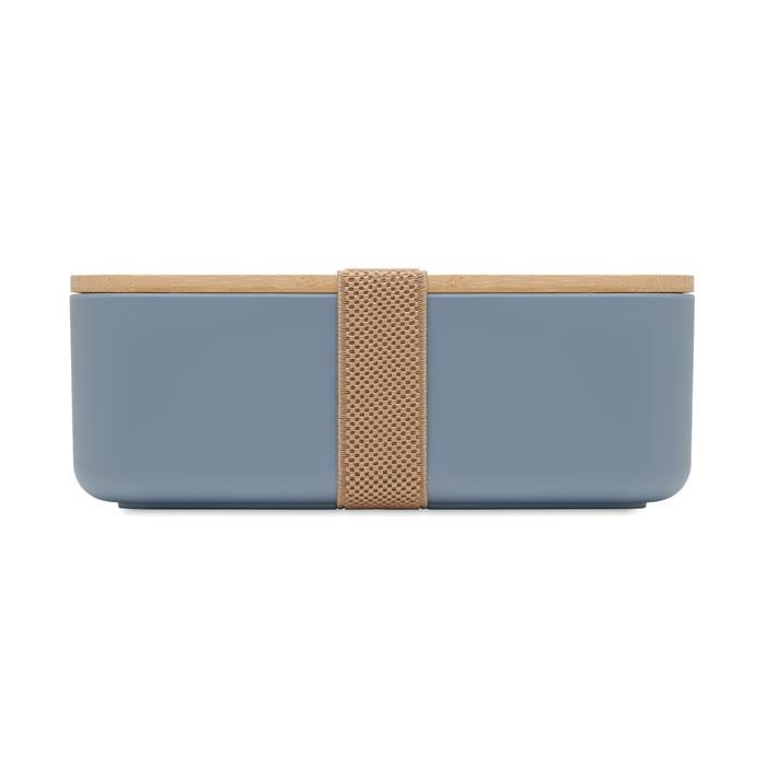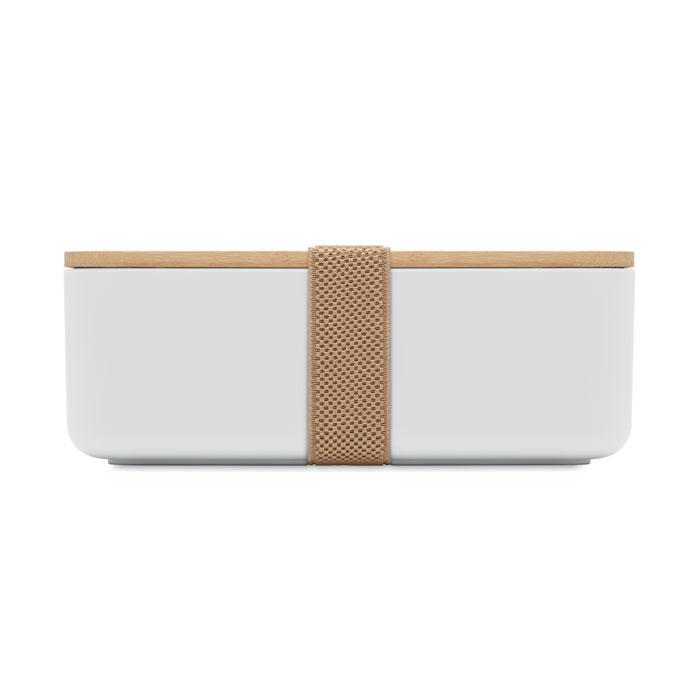 Boîte à lunch en maïs 100% PLA avec couvercle en bambou et fermeture élastique en RPET. Capacité : 1000 ml.