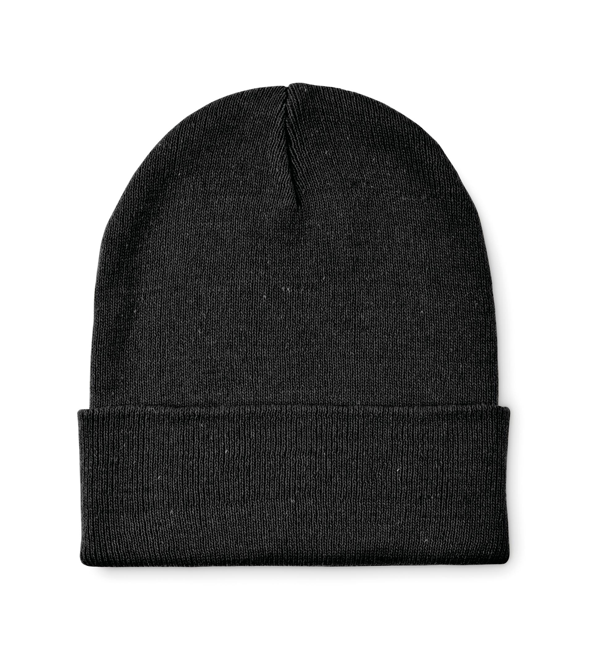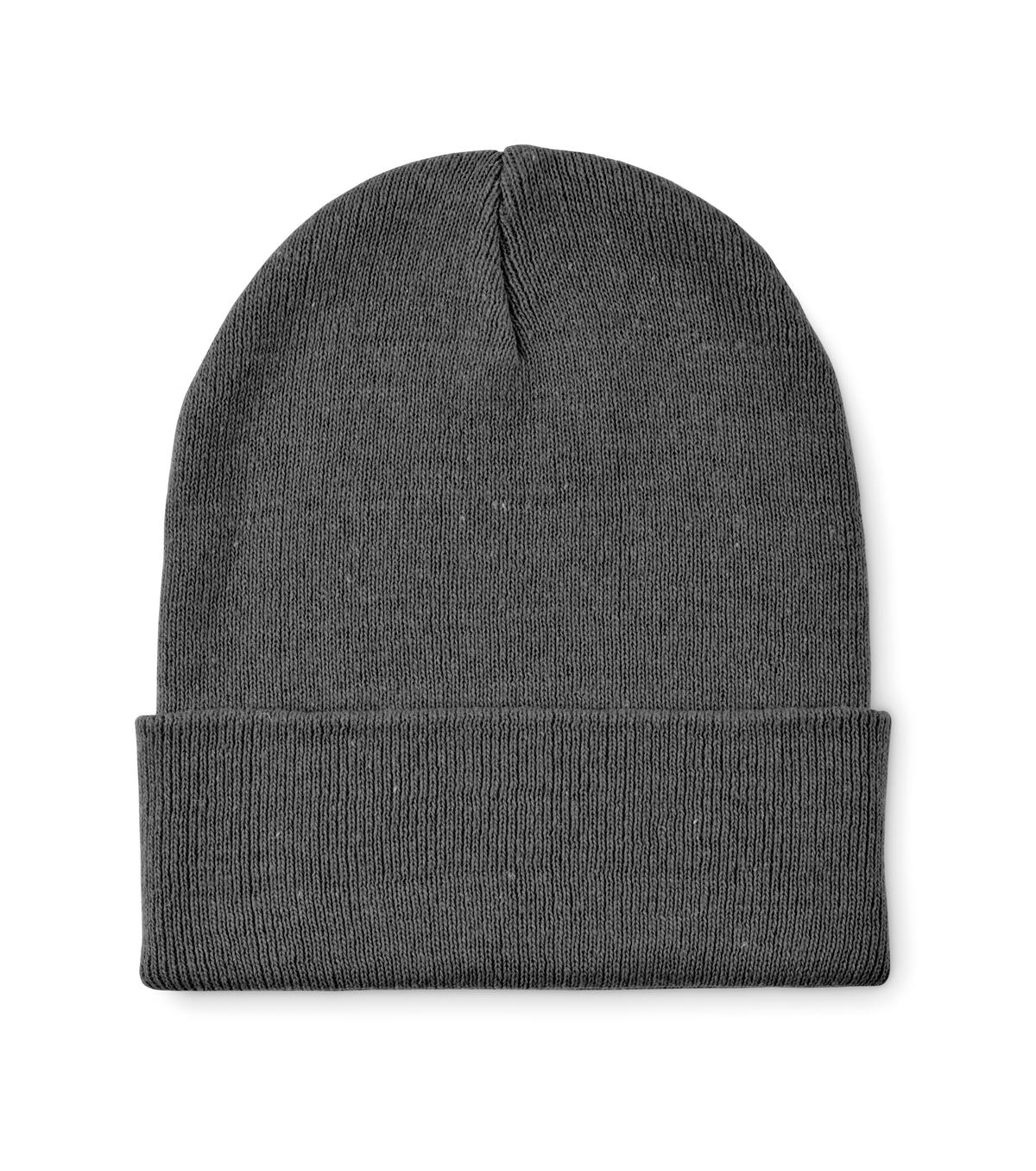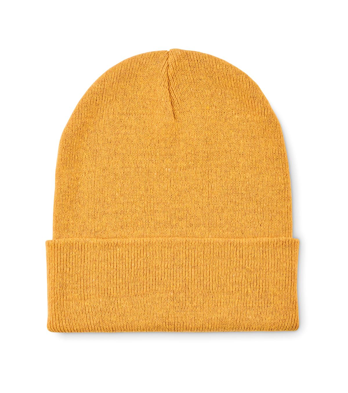 Bonnet tricoté unisexe en polyester (64 %) et acrylique (36 %) doux et extensible, avec revers. Modèle extensible à taille unique.