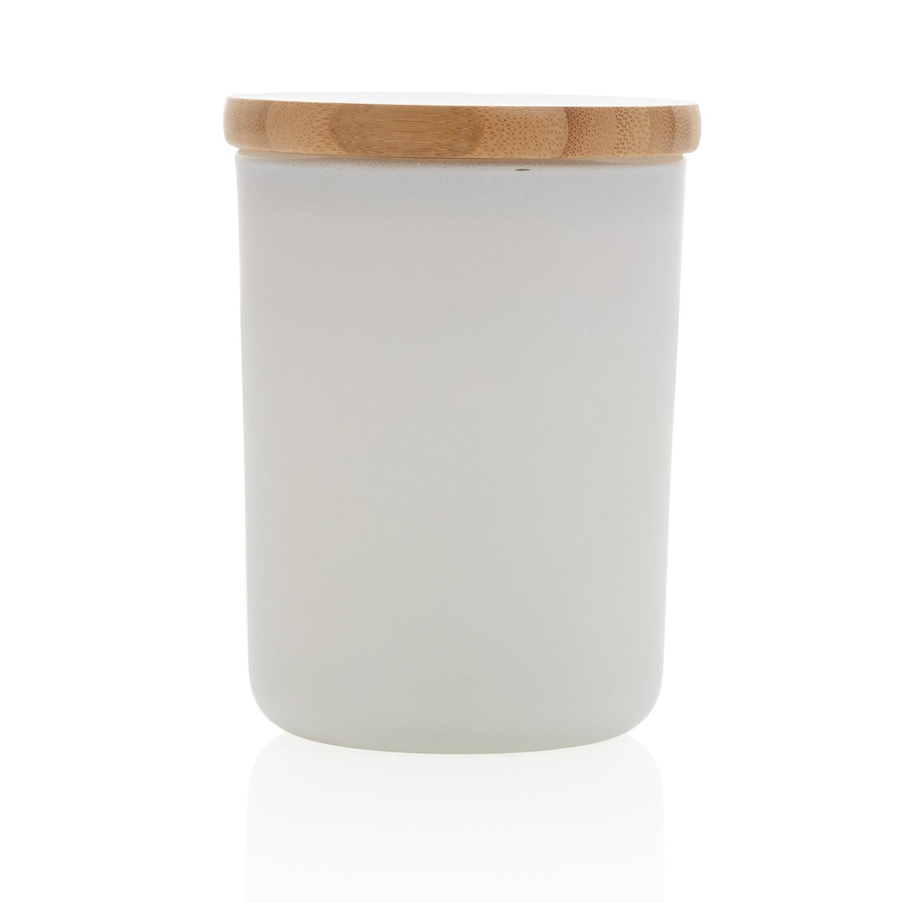 Bougie parfumée Ukiyo présentée dans un pot élégant avec un couvercle en bambou. Parfum de jasmin pour créer de la chaleur et du confort dans votre maison.