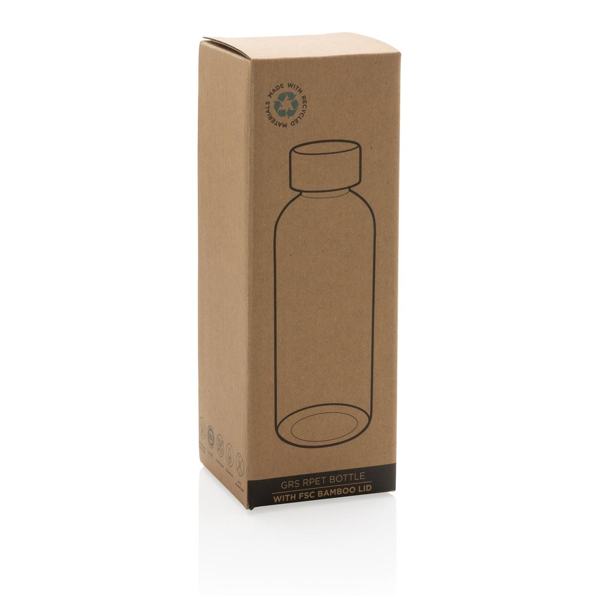 Bouteille d'eau 660ml à paroi simple en rPET certifié GRS et couvercle en bambou certifié FSC®. La certification GRS garantit une chaîne d'approvisionnement entièrement certifiée pour les matériaux recyclés. Lavage à la main uniquement. Ce produit est destiné aux boissons froides uniquement. Contenu recyclé total : 75 % sur la base du poids total de l'article. Sans BPA. Emballage kraft certifié FSC® inclus.