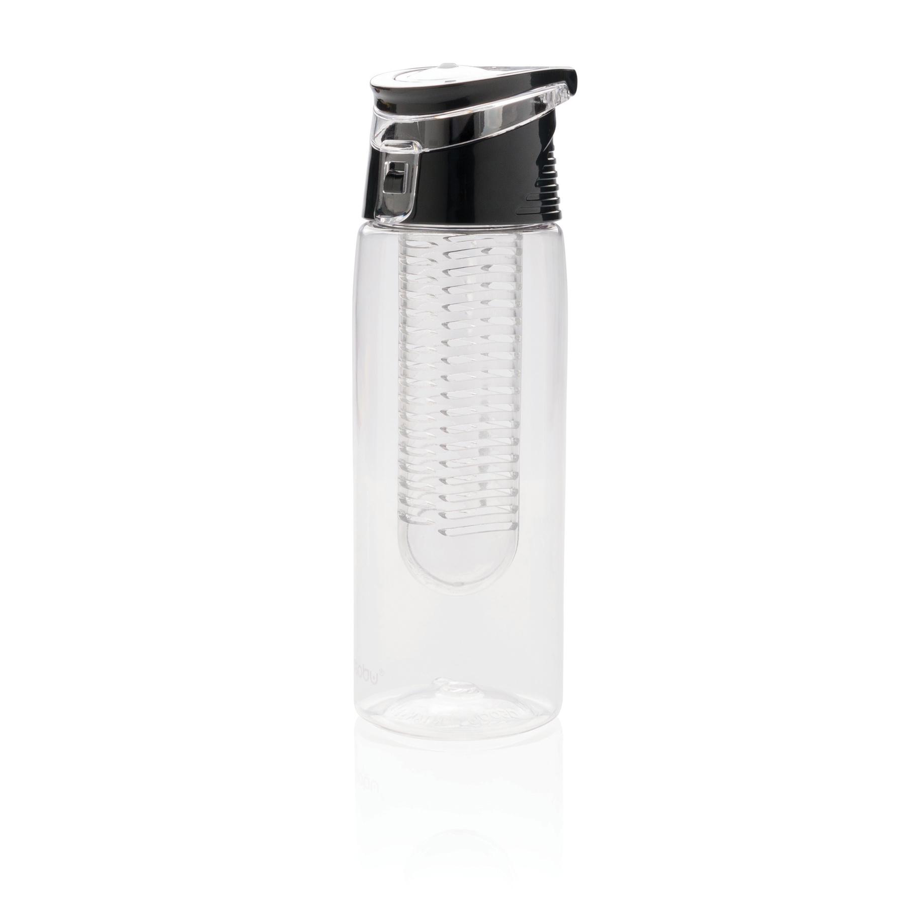 Bouteille en Tritan 700ml avec compartiment à infusion. Aromatisez et vitaminez votre eau en ajoutant des fruits frais dans le compartiment à infusion. Le couvercle en ABS est verrouillable pour vous permettre d’emmener votre eau partout avec vous.