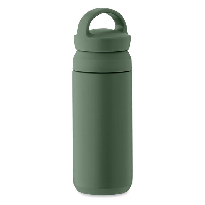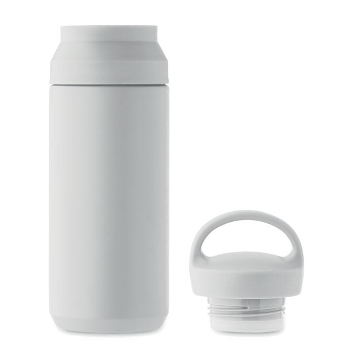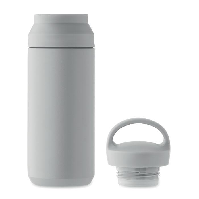 Bouteille isolante sous vide à double paroi en acier inoxydable recyclé (90 % d'acier inoxydable recyclé et 10 % d'acier inoxydable) avec double ouverture du couvercle en PP pour un nettoyage facile. Anti fuite. Capacité : 320 ml.