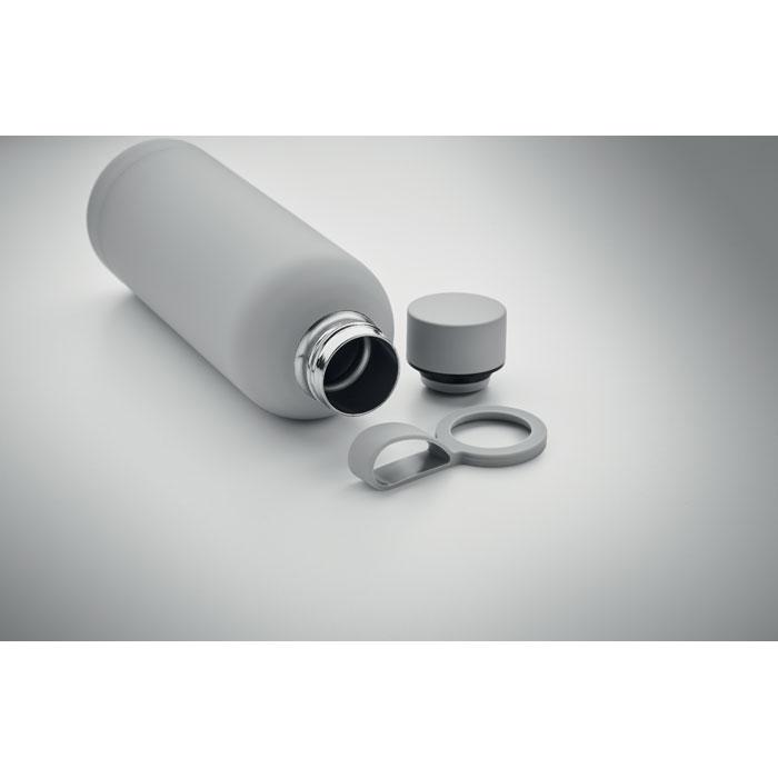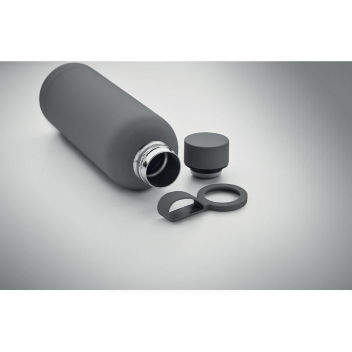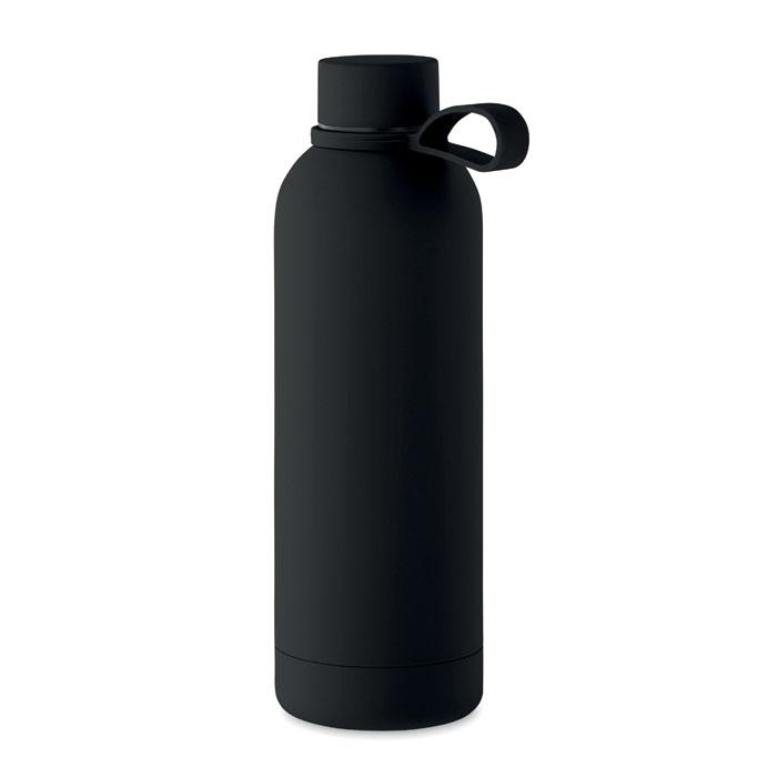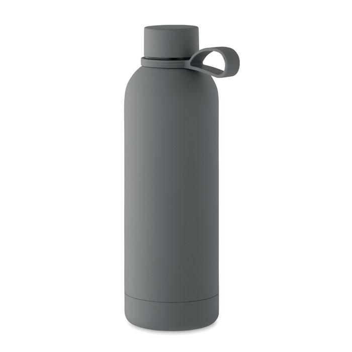Bouteille isolante sous vide à double paroi en acier inoxydable recyclé (90 % d'acier inoxydable recyclé et 10 % d'acier inoxydable) avec finition en caoutchouc et poignée en silicone. Anti fuite. Capacité : 500 ml.