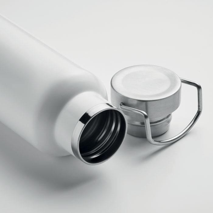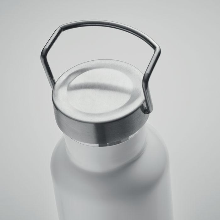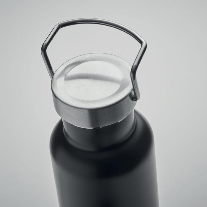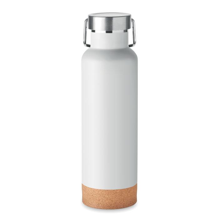 Bouteille à double paroi à vide isolant en acier inoxydable recyclé et base en liège avec bouchon à poignée. Anti fuite. Capacité : 500 ml. (90 % d'acier inoxydable recyclé et 10 % d'acier inoxydable).