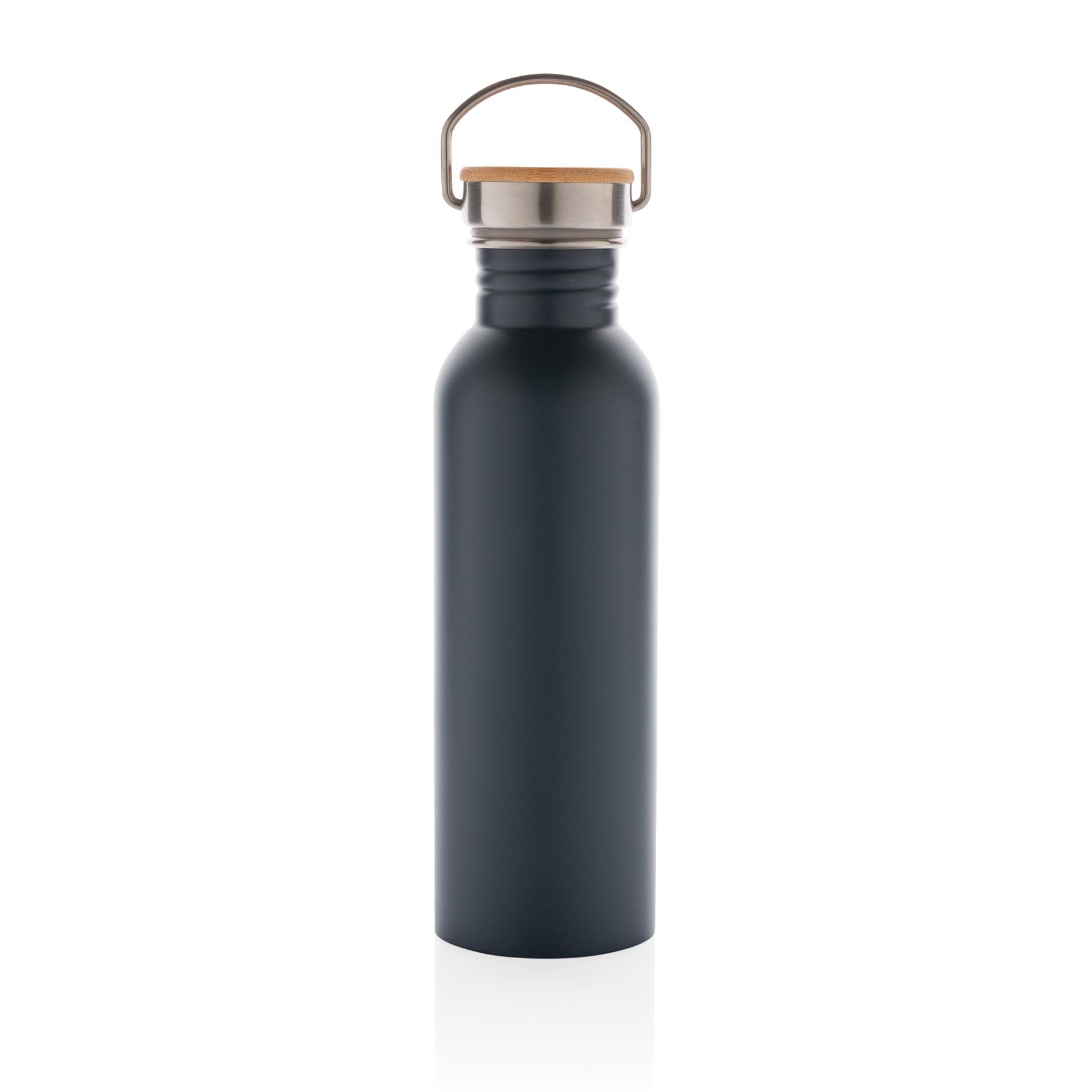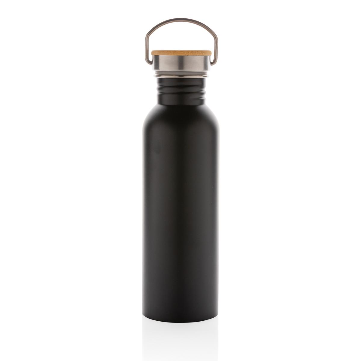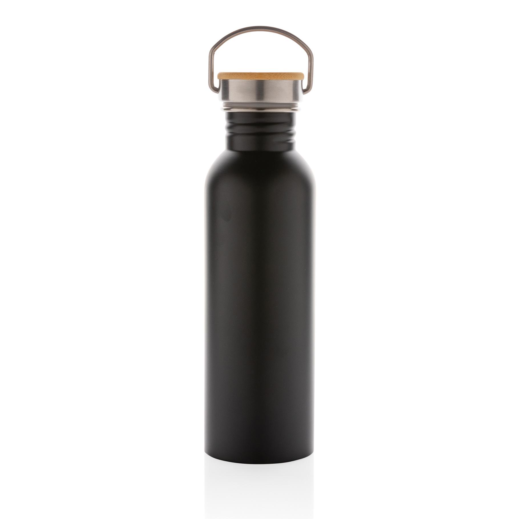 Bouteille 710ml à paroi simple en acier inoxydable avec un couvercle en acier inoxydable orné d'un magnifique morceau de bambou. Sans BPA. Lavage à la main uniquement.