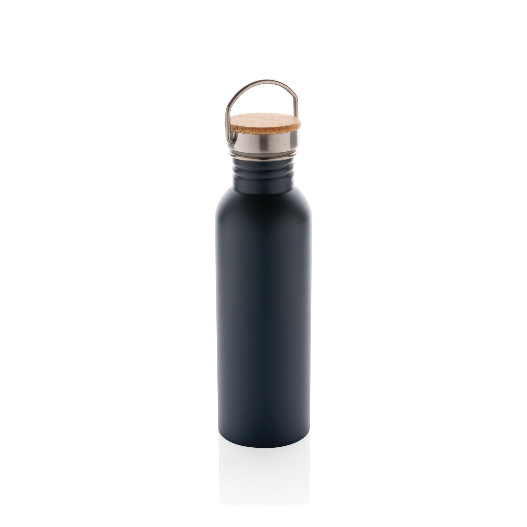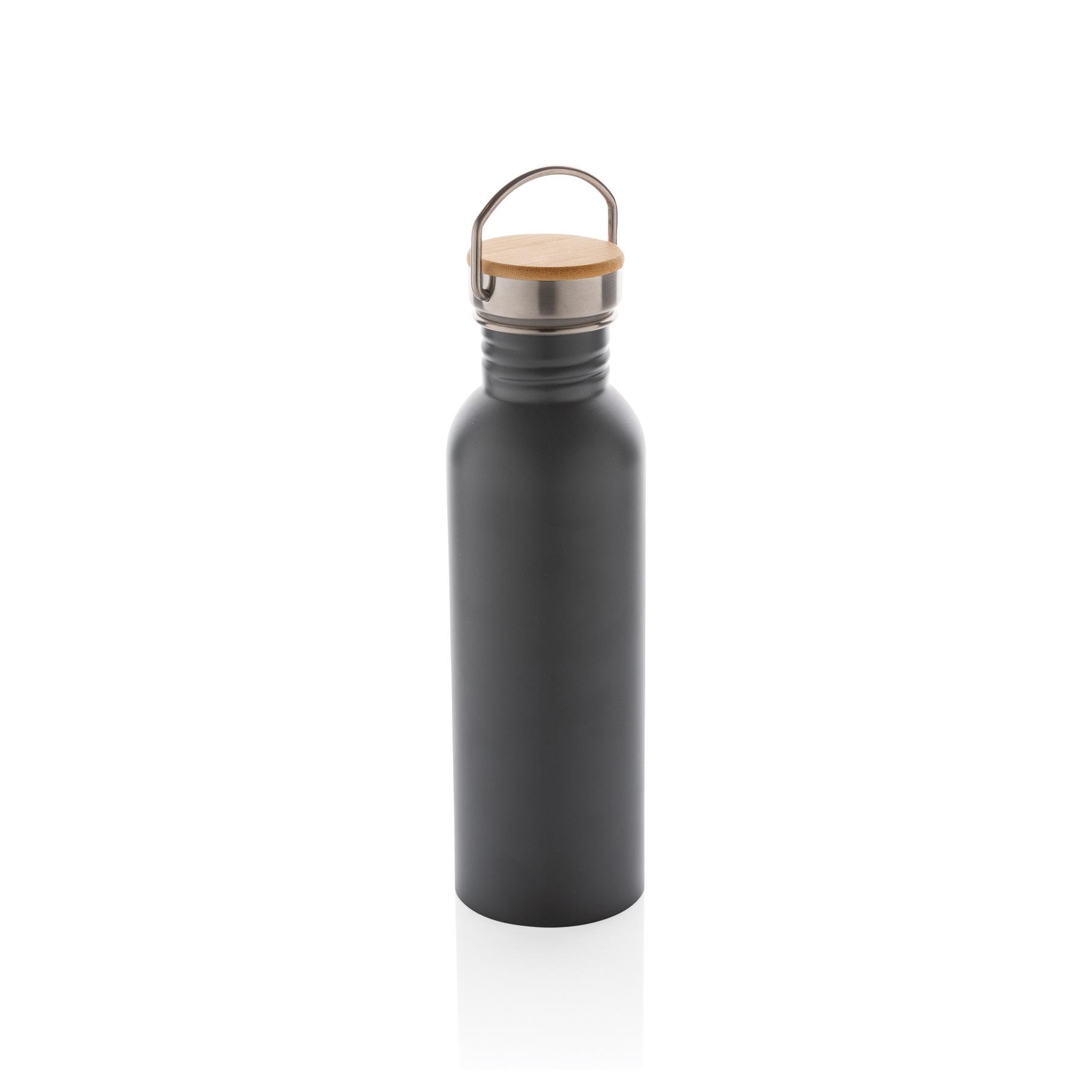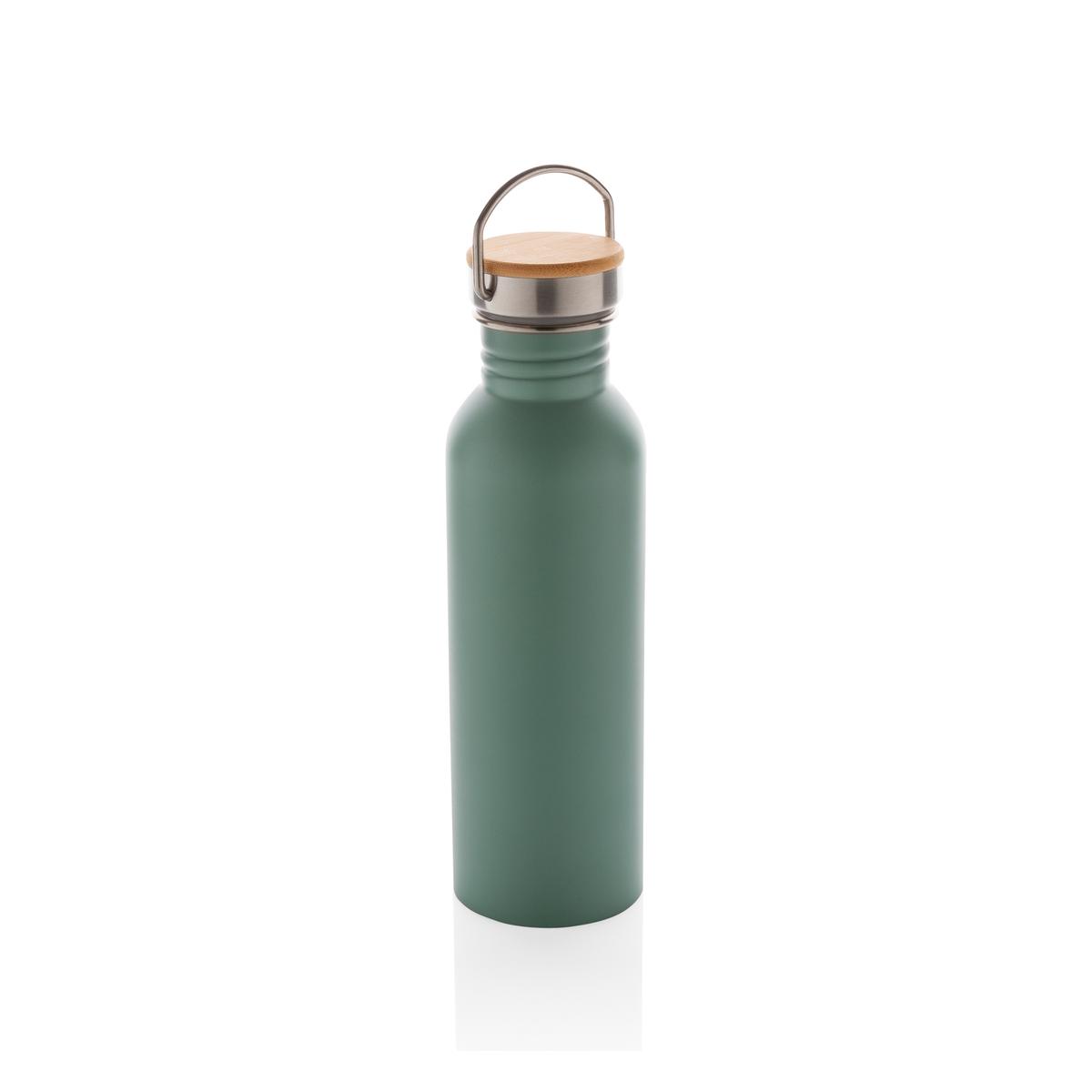 Bouteille 710ml à paroi simple en acier inoxydable avec un couvercle en acier inoxydable orné d'un magnifique morceau de bambou. Sans BPA. Lavage à la main uniquement.
