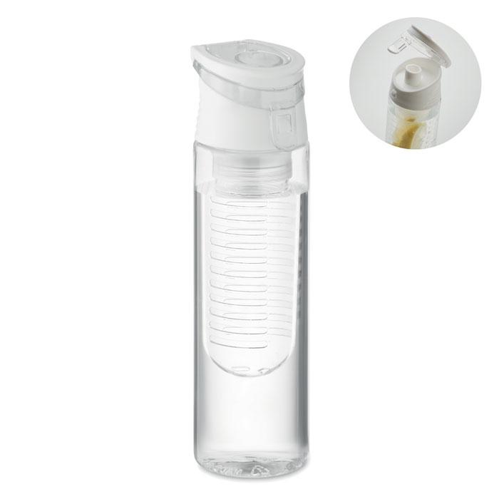 Bouteille en RPET avec infuseur de fruits amovible, poignée de transport et couvercle étanche. Capacité de 500 ml.
