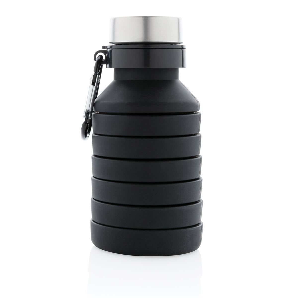 Bouteille 550ml en silicone pliable et intelligemment conçue. Fabriquée en silicone 100 % alimentaire, elle est souple et facile à nettoyer. Un mousqueton pratique vous permet d'accrocher la bouteille à votre sac pour un transport facile. Sans BPA.