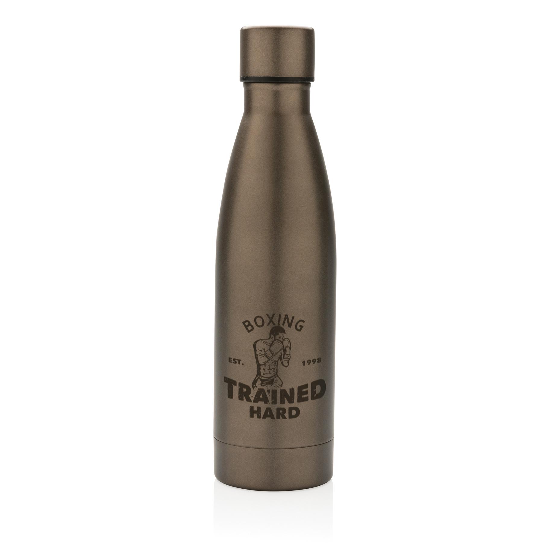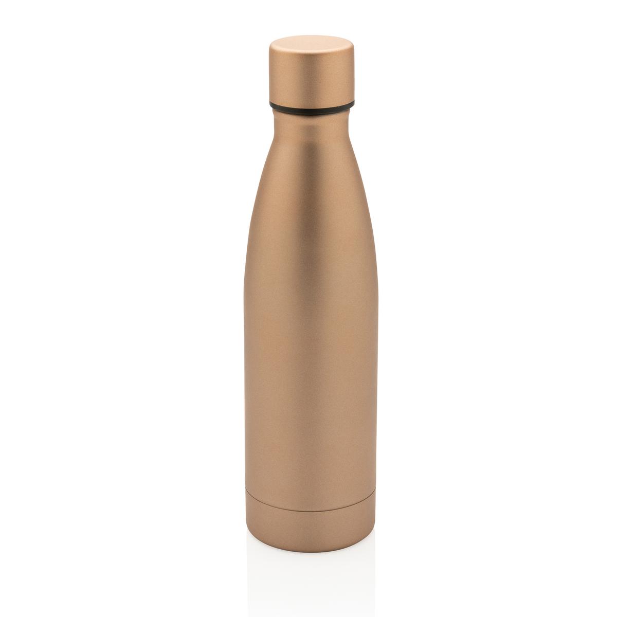 Bouteille 500ml double paroi en acier inoxydable recyclé RCS (Recycled Claim Standard). Garde les boissons au frais pendant 15 heures ou au chaud pendant 5 heures. Cette bouteille s'adapte à la plupart des porte-gobelets standard des voitures, vous pouvez donc l'emmener partout avec vous. La certification RCS garantit une chaîne d'approvisionnement entièrement certifiée pour les matériaux recyclés. Contenu recyclé total : 93% sur la base du poids total de l'article. Sans BPA. Emballage kraft certifié FSC® inclus.