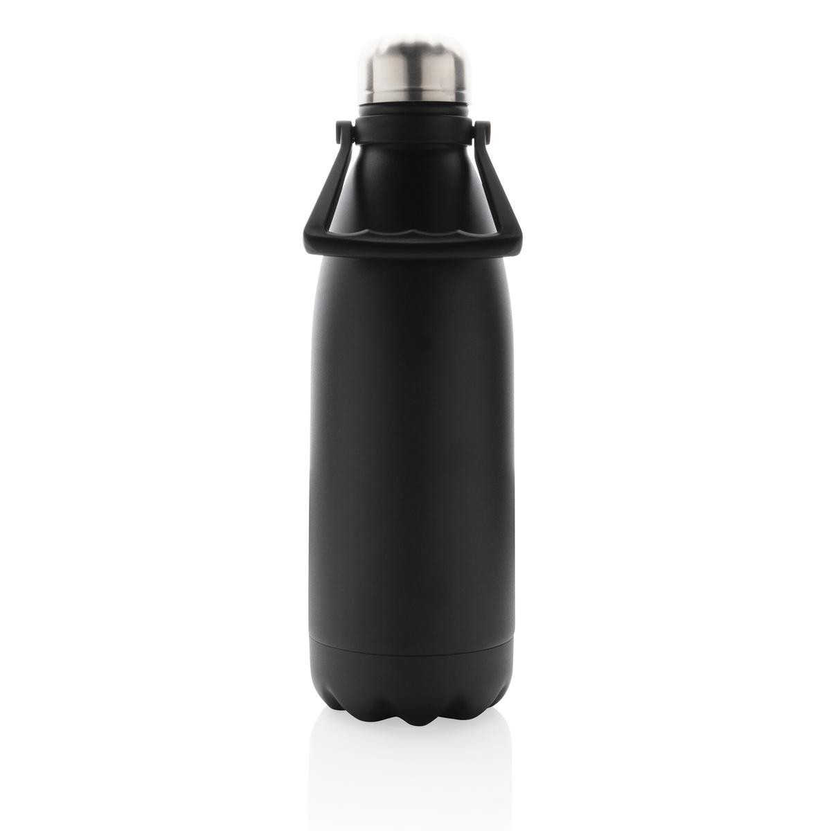Bouteille 1.5L double paroi en acier inoxydable recyclé RCS (Recycled Claim Standard). Contenu recyclé total: 88% basé sur le poids total de l'article. RCS est une norme permettant de vérifier le contenu recyclé d'un produit tout au long de la chaîne d'approvisionnement. Garde les boissons au frais pendant 15 heures ou au chaud pendant 5 heures. Cette bouteille a une finition par poudrage électrostatique et une poignée pratique pour le transport. Sans BPA. Emballée dans une boîte Kraft certifiée FSC®.