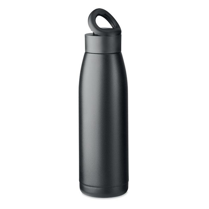 Bouteille à double paroi en acier inox recyclé (90 % d'acier inox recyclé et 10 % d'acier inox) avec couvercle souple en silicone. Agiter la bouteille pour que la température de la surface se réchauffe ou se refroidisse, en fonction du liquide contenu. 400ml. Anti fuite.