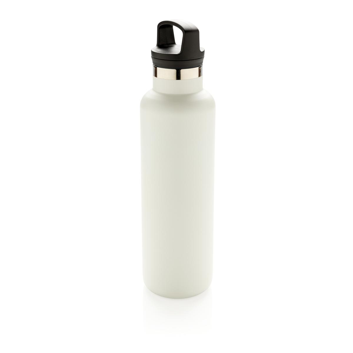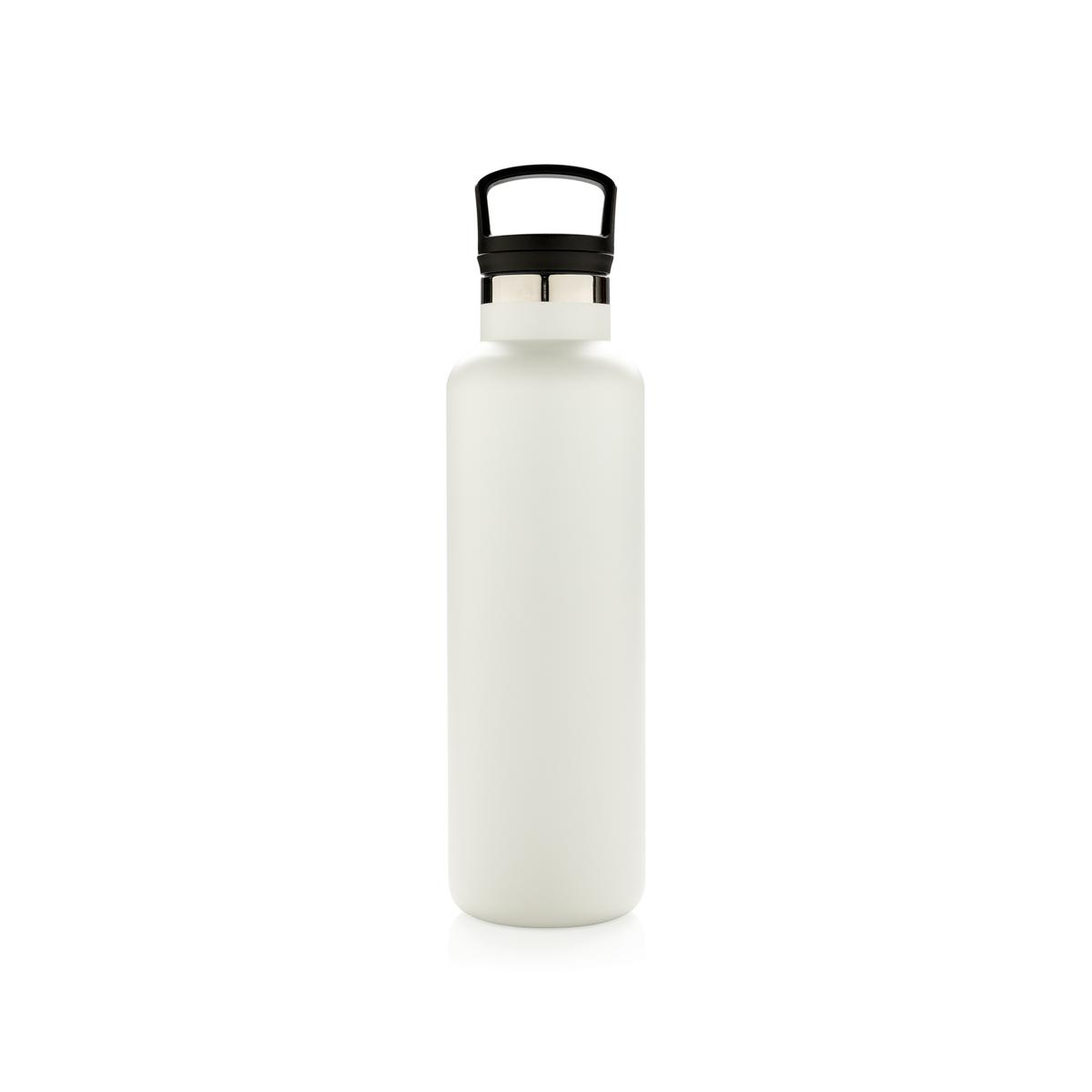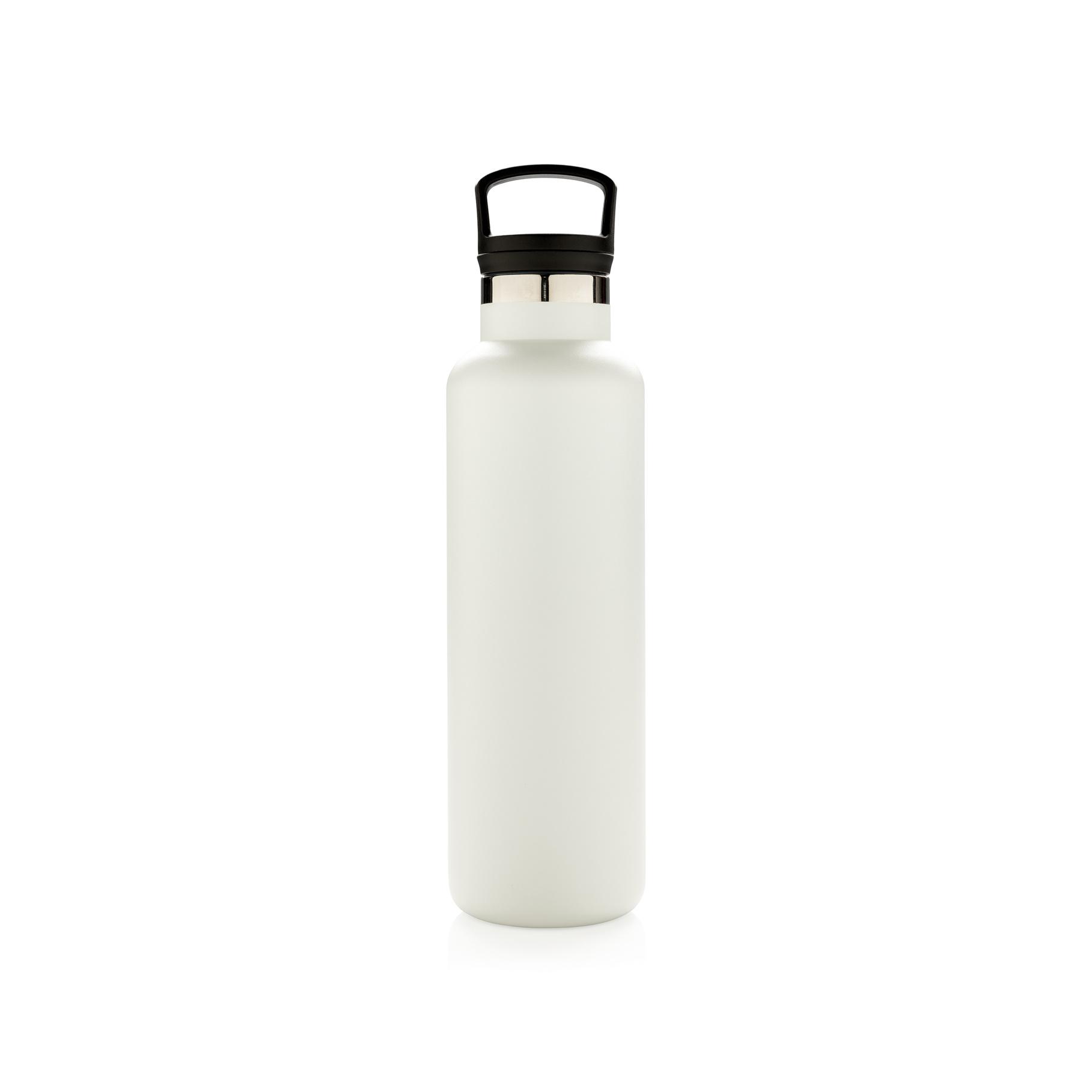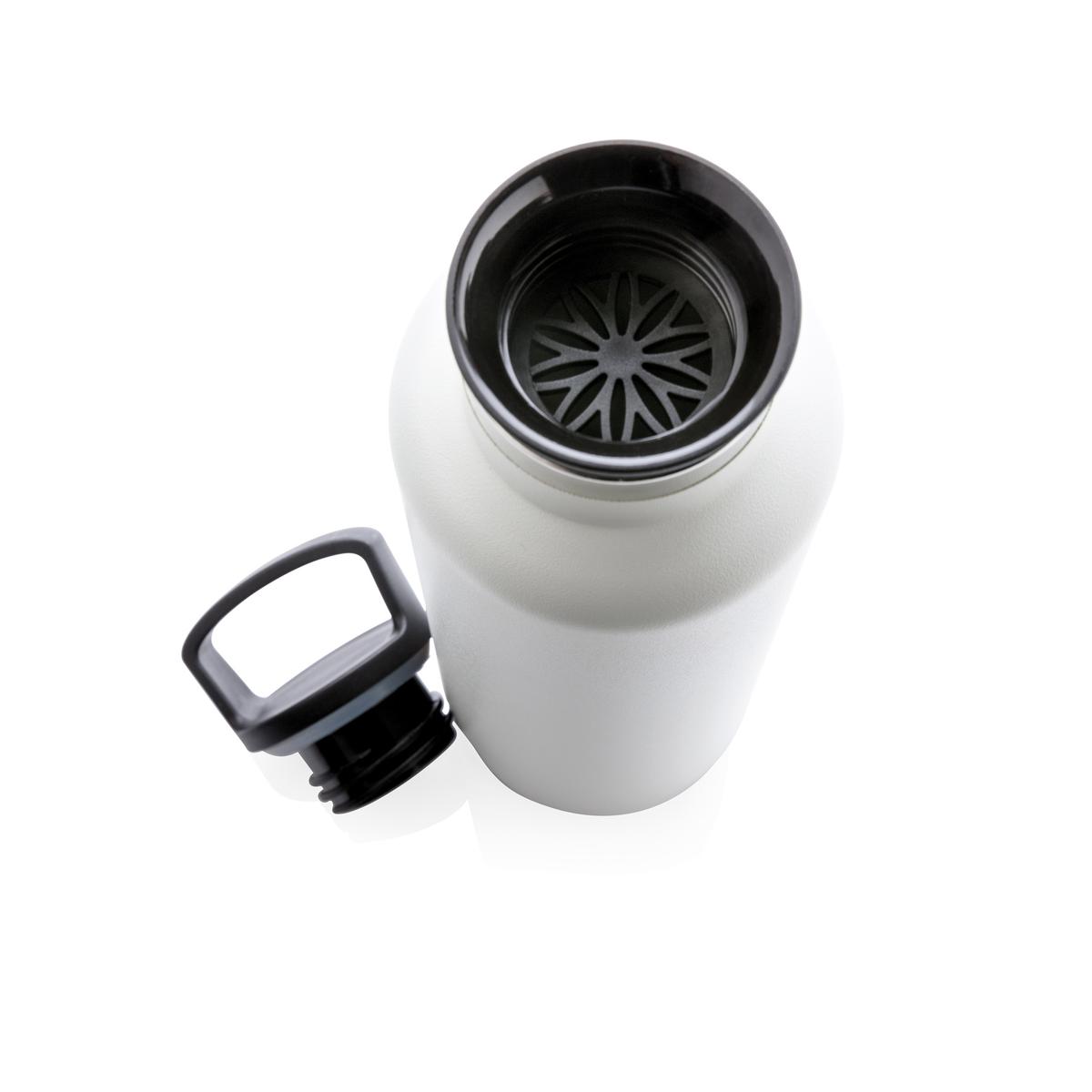Bouteille isotherme 600ml à double paroi, extérieur en 201 et intérieur en 304, finition par poudrage électrostatique. Bouchon 2-en-1 avec filtre, idéal pour le thé ou infusions. Construite pour durer, cette bouteille s’utilise en toute saison. Garde le chaud jusqu’à 5h et le froid jusqu’à 15h. Existe en plusieurs coloris. La couleur blanc cassé est en PMS Cool Gray 1.