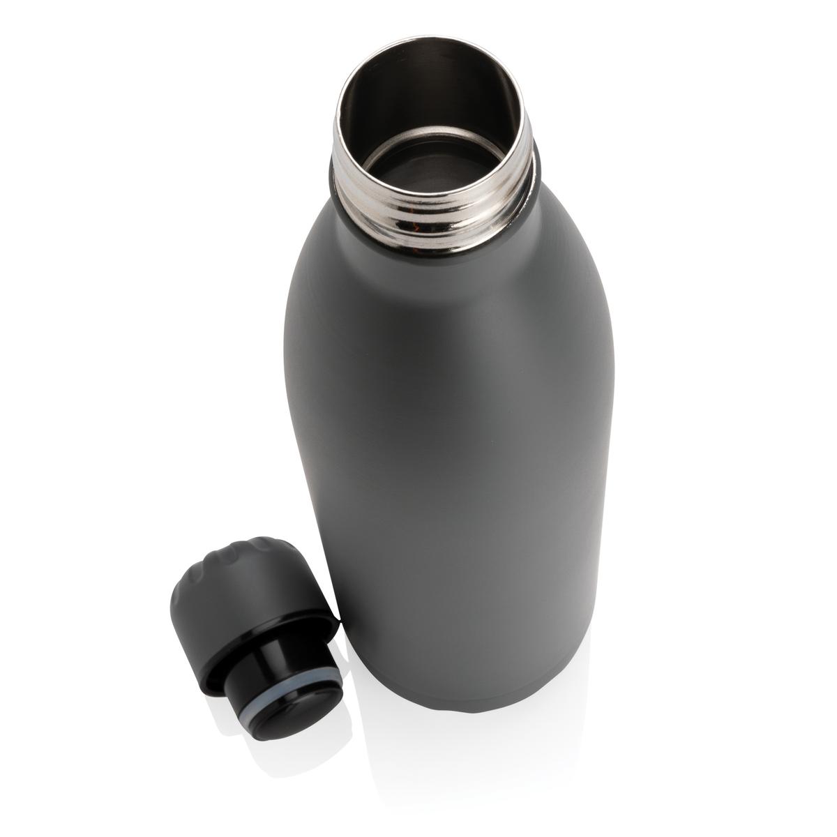 Bouteille 750ml en acier inoxydable double paroi de couleur unie. La bouteille garde les boissons froides au frais jusqu'à 15 heures et les boissons chaudes au chaud jusqu'à 5 heures. Avec une base qui s'adapte à la plupart des porte-gobelets, cette bouteille d'eau au look élégant vous permettra de vous hydrater lors de vos déplacements, où que vous soyez.