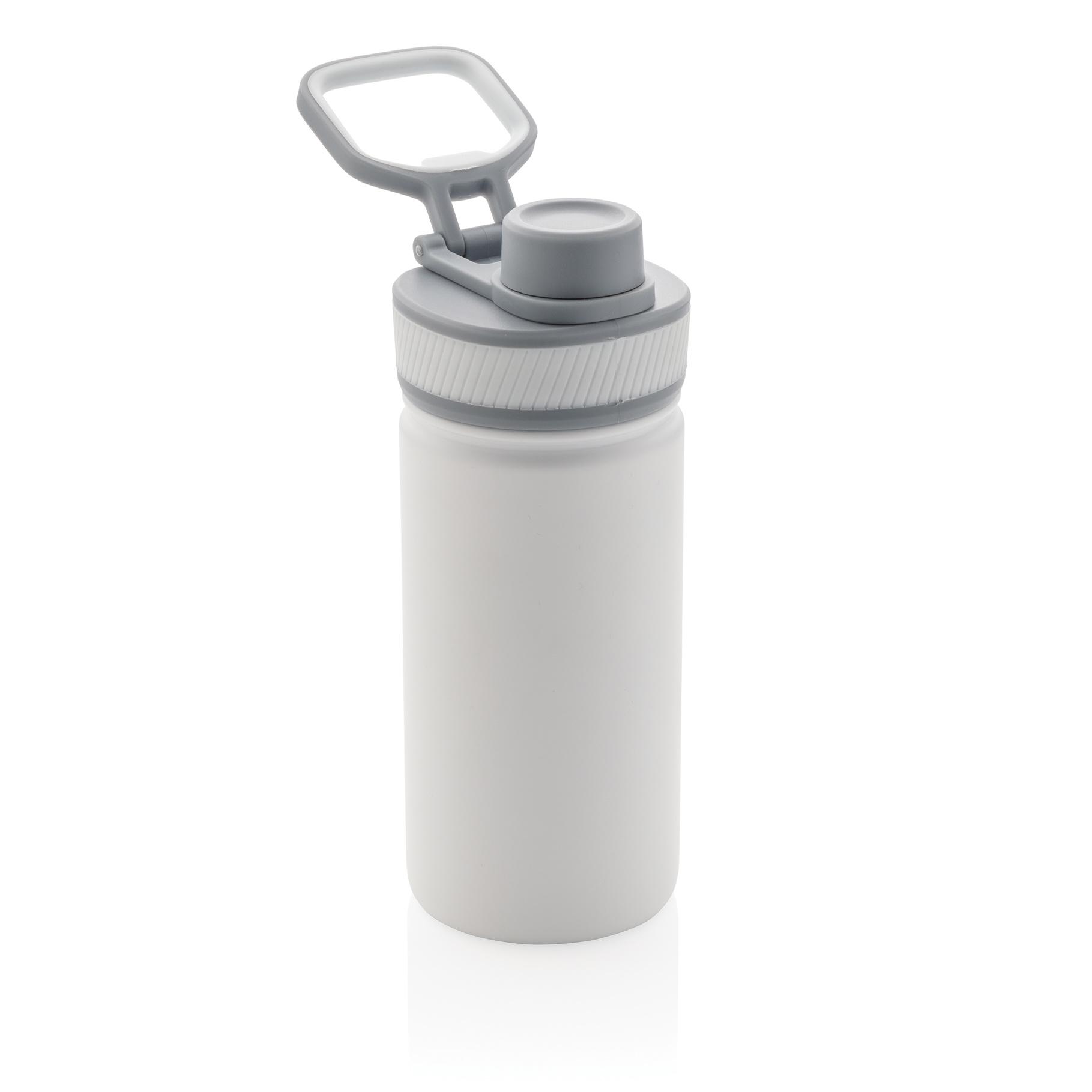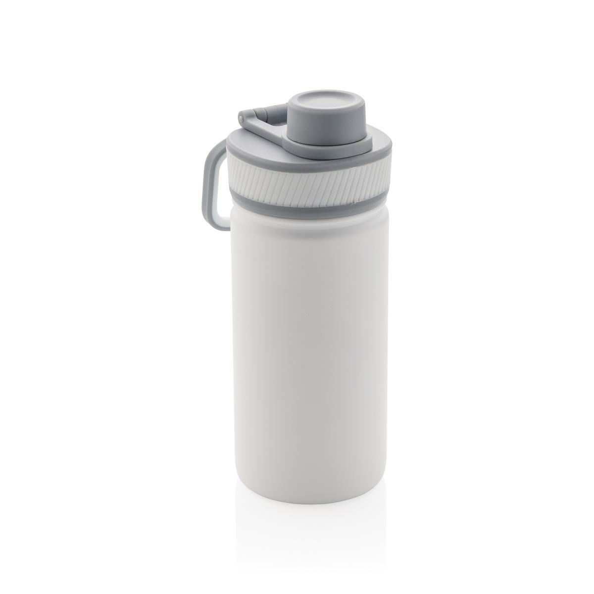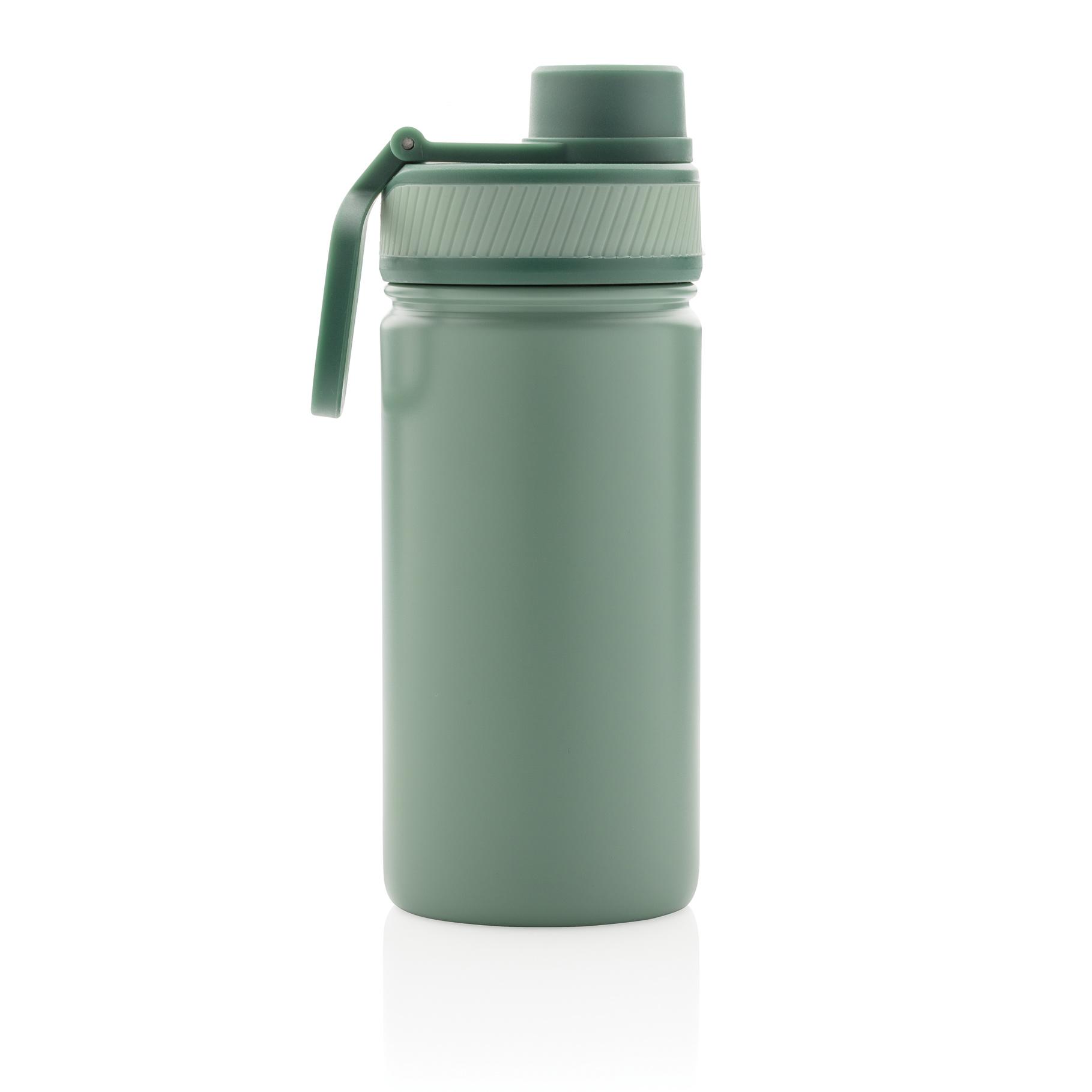 Bouteille isotherme 550ml en acier inoxydable, étanche, bouchon au design unique et finition matte. Garde la chaleur jusqu'à 5h et le froid jusqu'à 15h. Sans BPA.