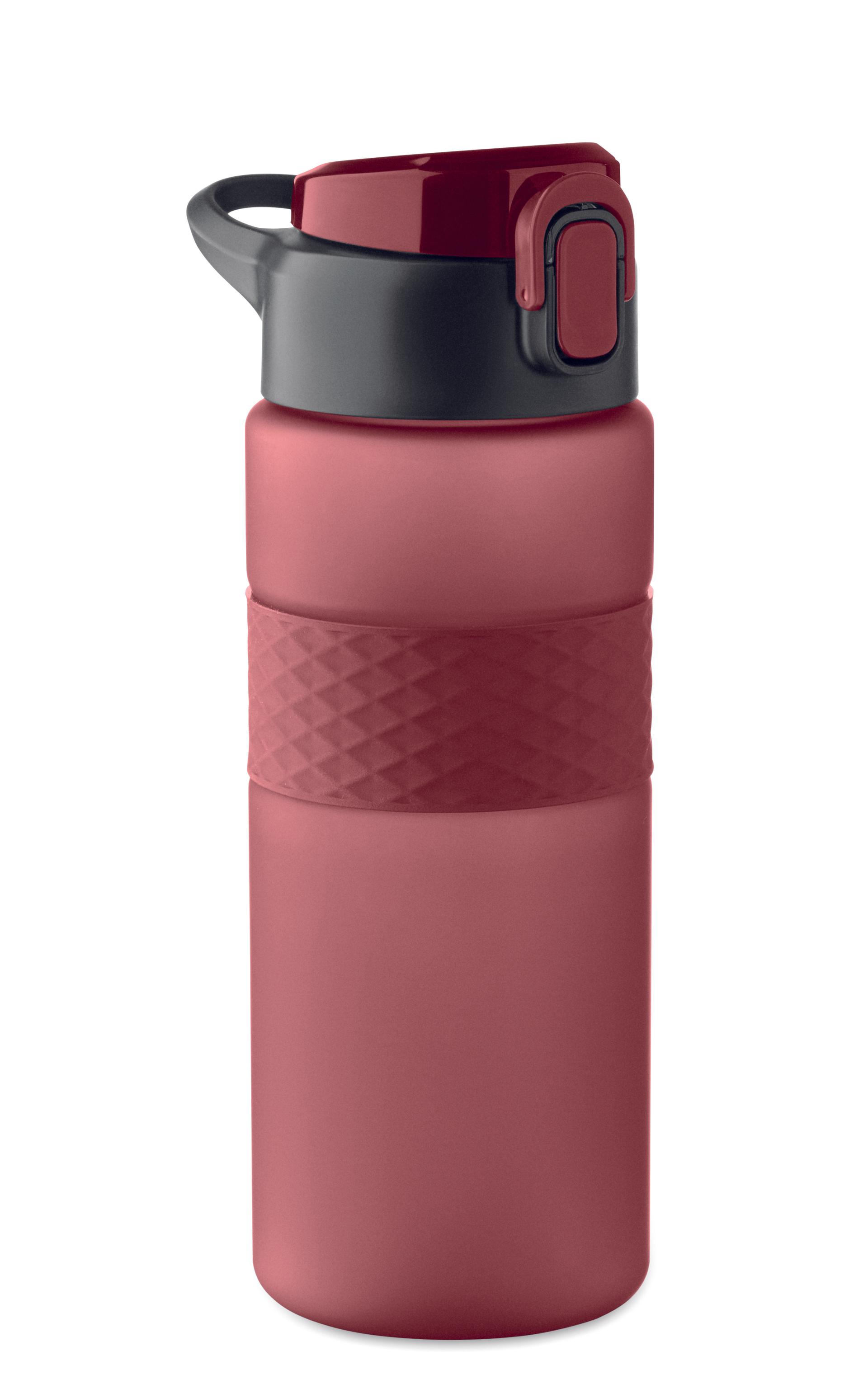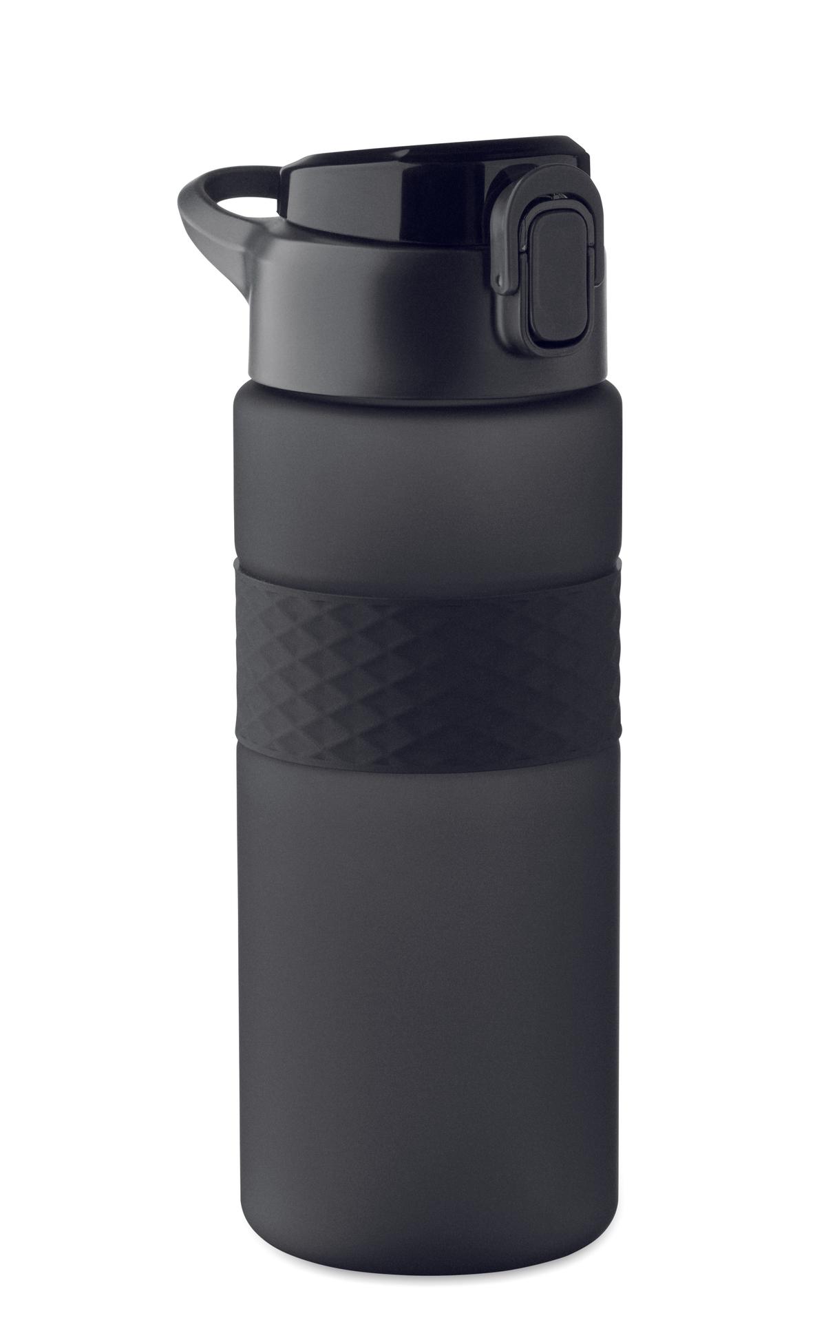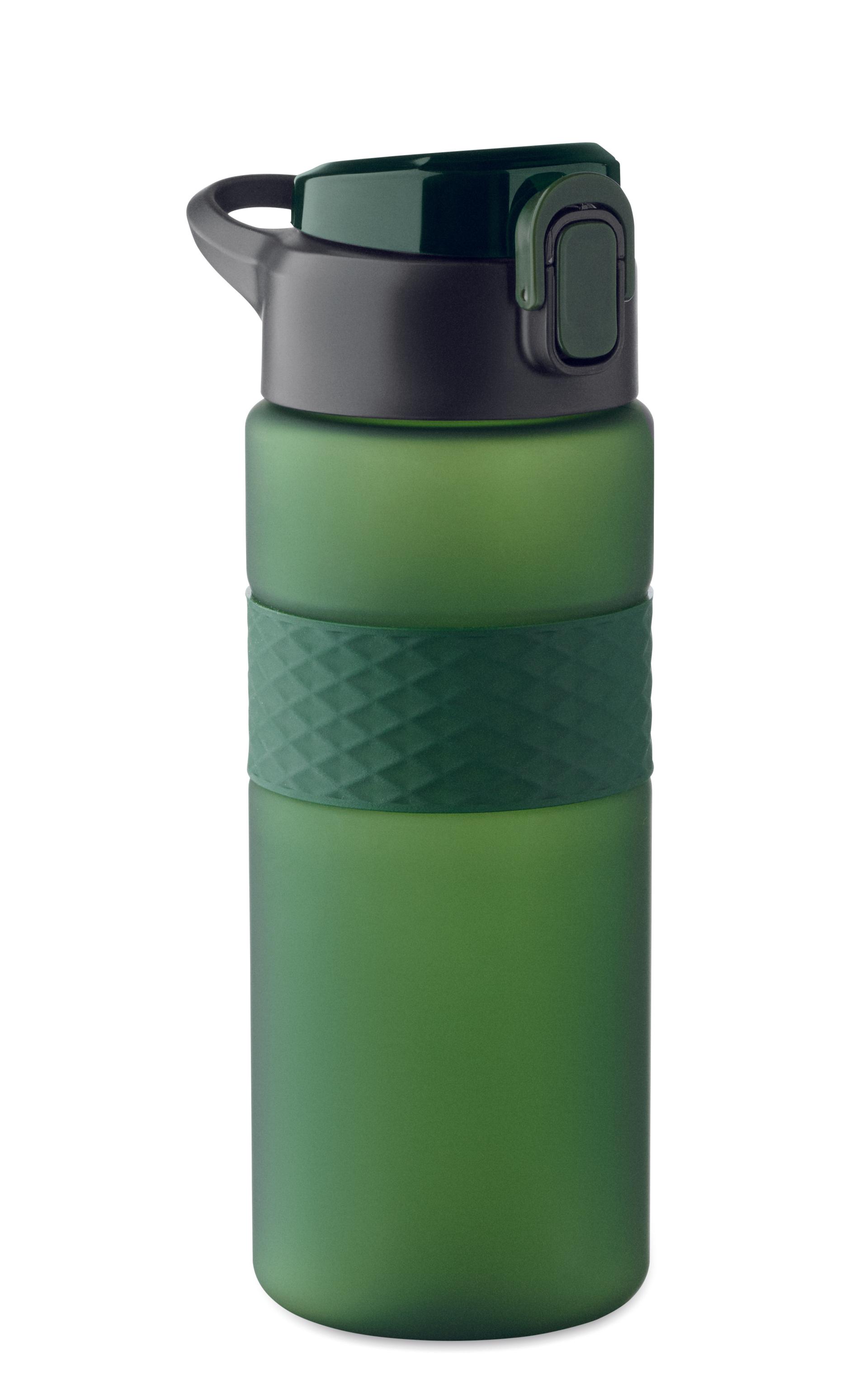 Gourde en RPET avec poignée en silicone, couvercle à rabat en PP et fermeture de sécurité. Paille intégrée. Anti fuite. Capacité : 700 ml.
