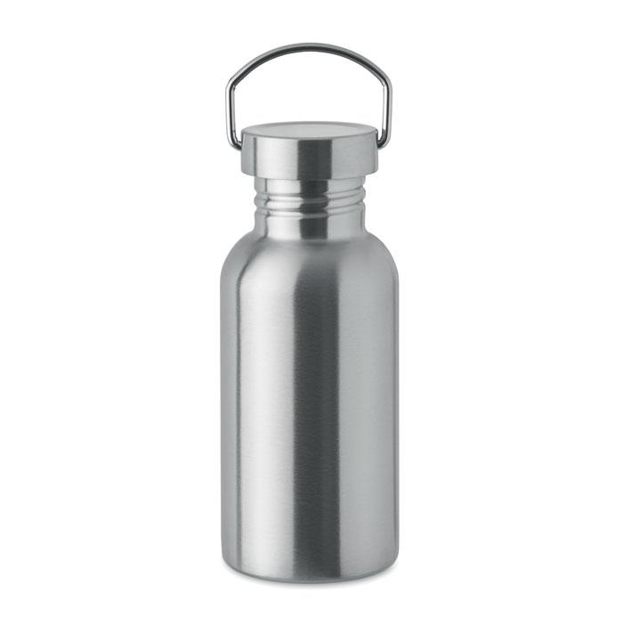 Bouteille à simple paroi en acier inoxydable recyclé (90 % d'acier inoxydable recyclé et 10 % d'acier inoxydable) avec bouchon et poignée. Anti fuite. Capacité : 500 ml.