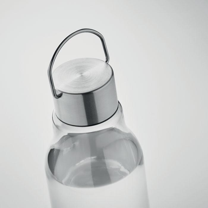 Bouteille Tritan Renew™ sans BPA avec couvercle à poignée en acier inoxydable. Anti fuite. Capacité : 800ml. Ce produit est dérivé de 50% de déchets plastiques certifié ISCC mass balance.