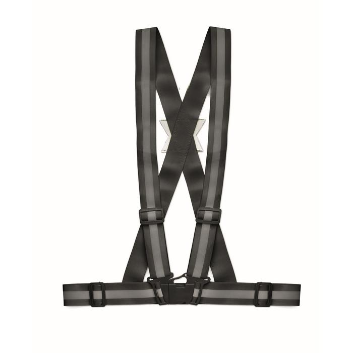 Bretelles de sécurité réfléchissante réglable à 360° avec bandes argentées. Objet uniquement promotionnel.