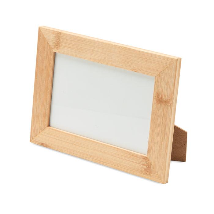 Cadre photo en bambou. Le cadre peut être suspendu, en position verticale ou horizontale. Taille de la photo : 15 x 10 cm. Le bambou est un produit naturel, et présente de légères variations de couleur, de décoration et de tailles.