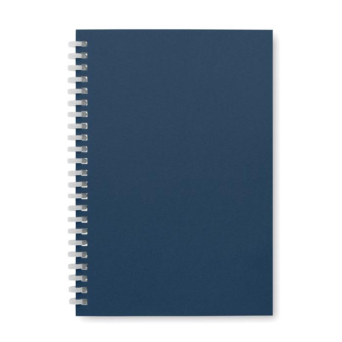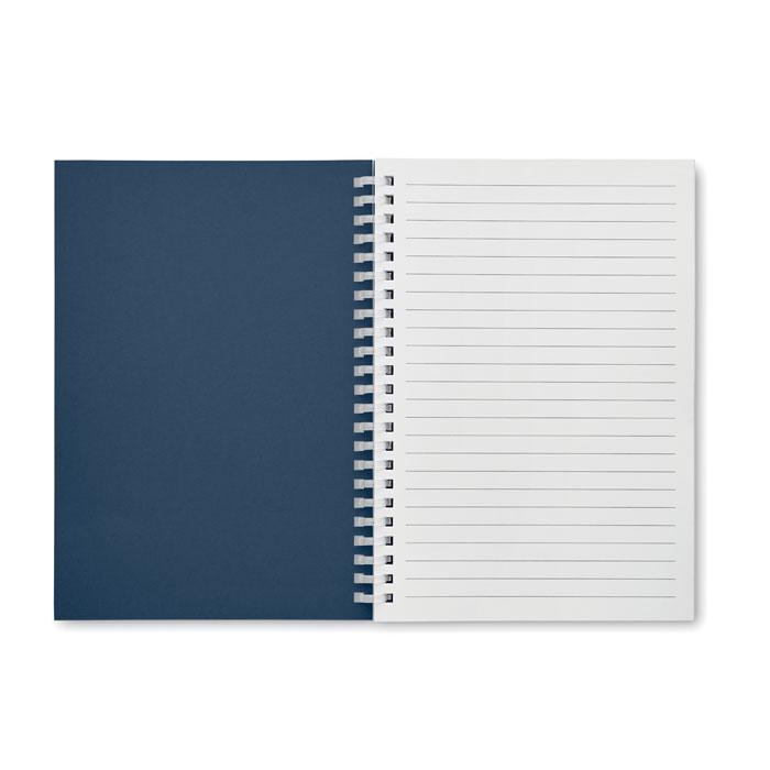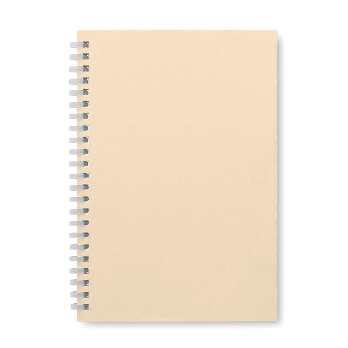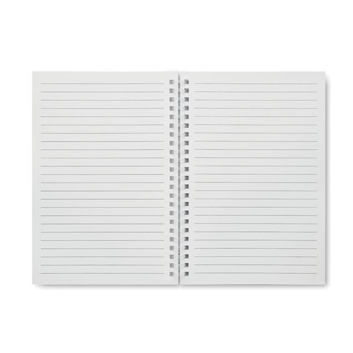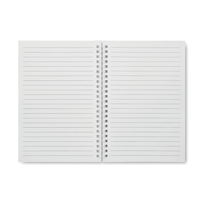 Carnet A5 à couverture en carton recyclé et reliure à spirale. 160 pages de papier ligné recyclé (80 feuilles).