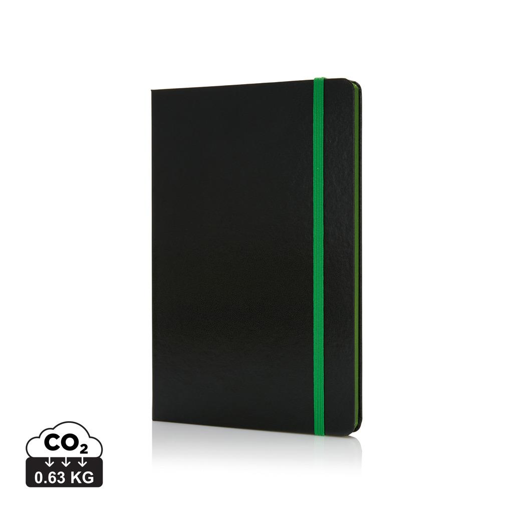 Carnet de notes à couverture rigide très tendance avec 80 feuilles/160 pages de 80g/m² (papier crème) et lignes noires. Le bord des pages est dans une couleur assortie à la bande élastique.