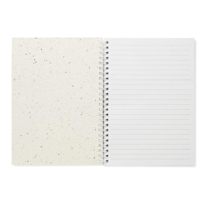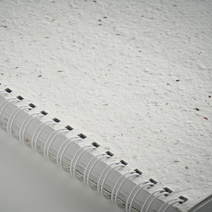Carnet A5 à spirale avec couverture en papier semence. 200 pages lignées recyclées (100 feuilles). Fabriqué en UE.
