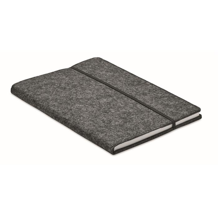 Carnet A5 avec couverture en feutre RPET. 160 pages lignées en papier recyclé (80 feuilles / 70 gr/m²). Passant pour stylo.