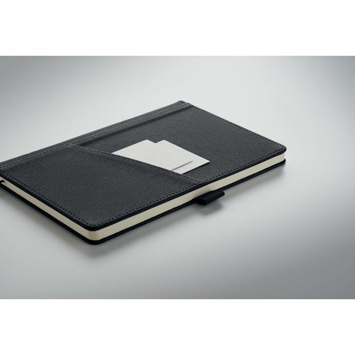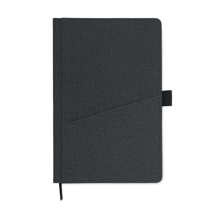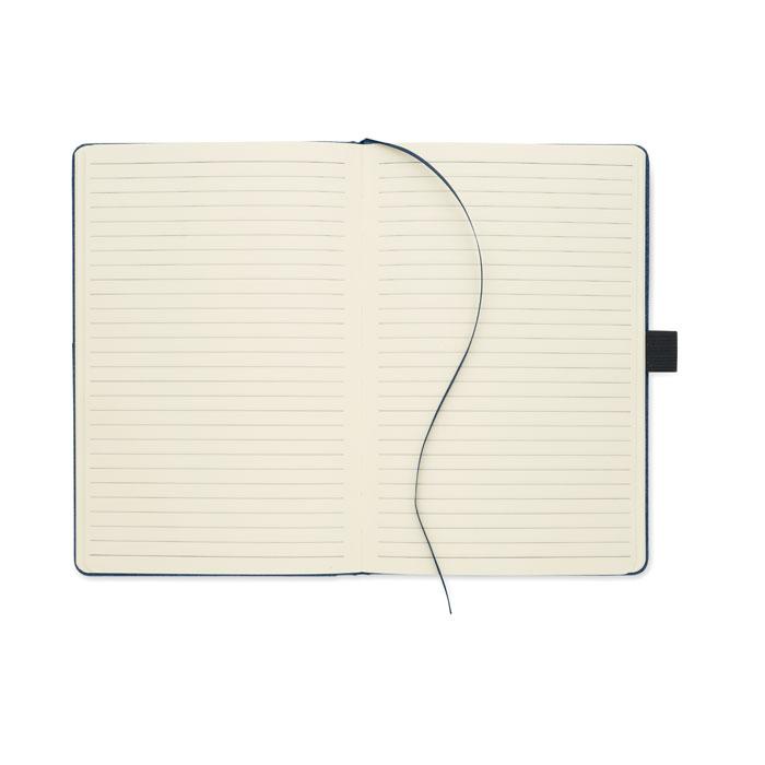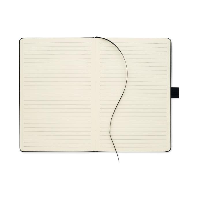 Carnet A5 avec couverture rigide en PU, poche frontale pour téléphone et boucle pour stylo. Relié par un étui. 160 pages lignées en papier recyclé (80 feuilles). Marque-page en ruban assorti.