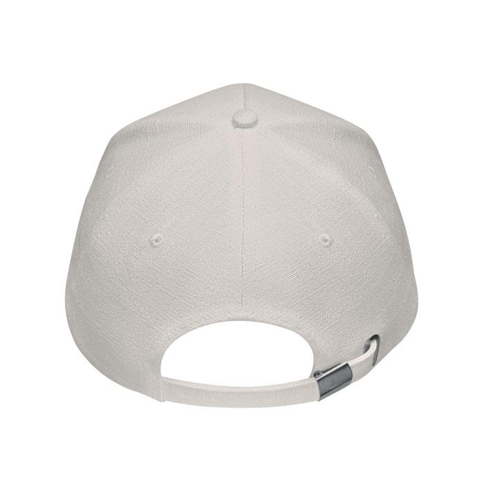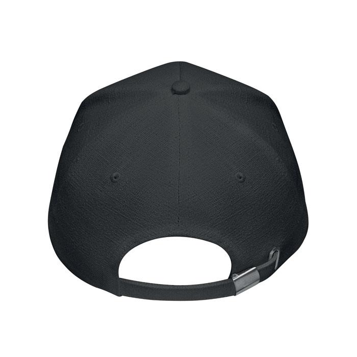 Casquette de baseball 5 pans en tissu 100% chanvre 370 gr/m² avec clip en laiton sur fermeture à sangle réglable. 5 œillets surpiqués de couleur assortie. Taille 7 1/4.