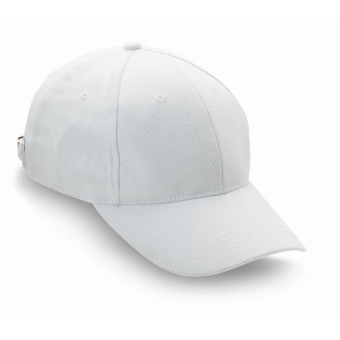 Casquette baseball 6 pans en coton brossé 260 gr/m2, patte de réglage ajustable avec clip métal. 6 œillets cousus de couleur assortie. Taille 7 1/4.