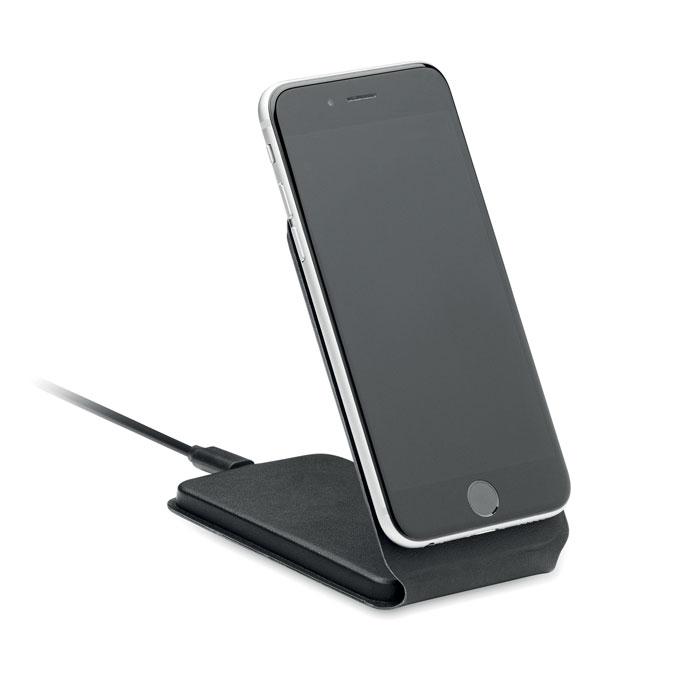 Chargeur sans fil pliable 15W avec support magnétique pour téléphone en 58% polyester recyclé et 42% PU.