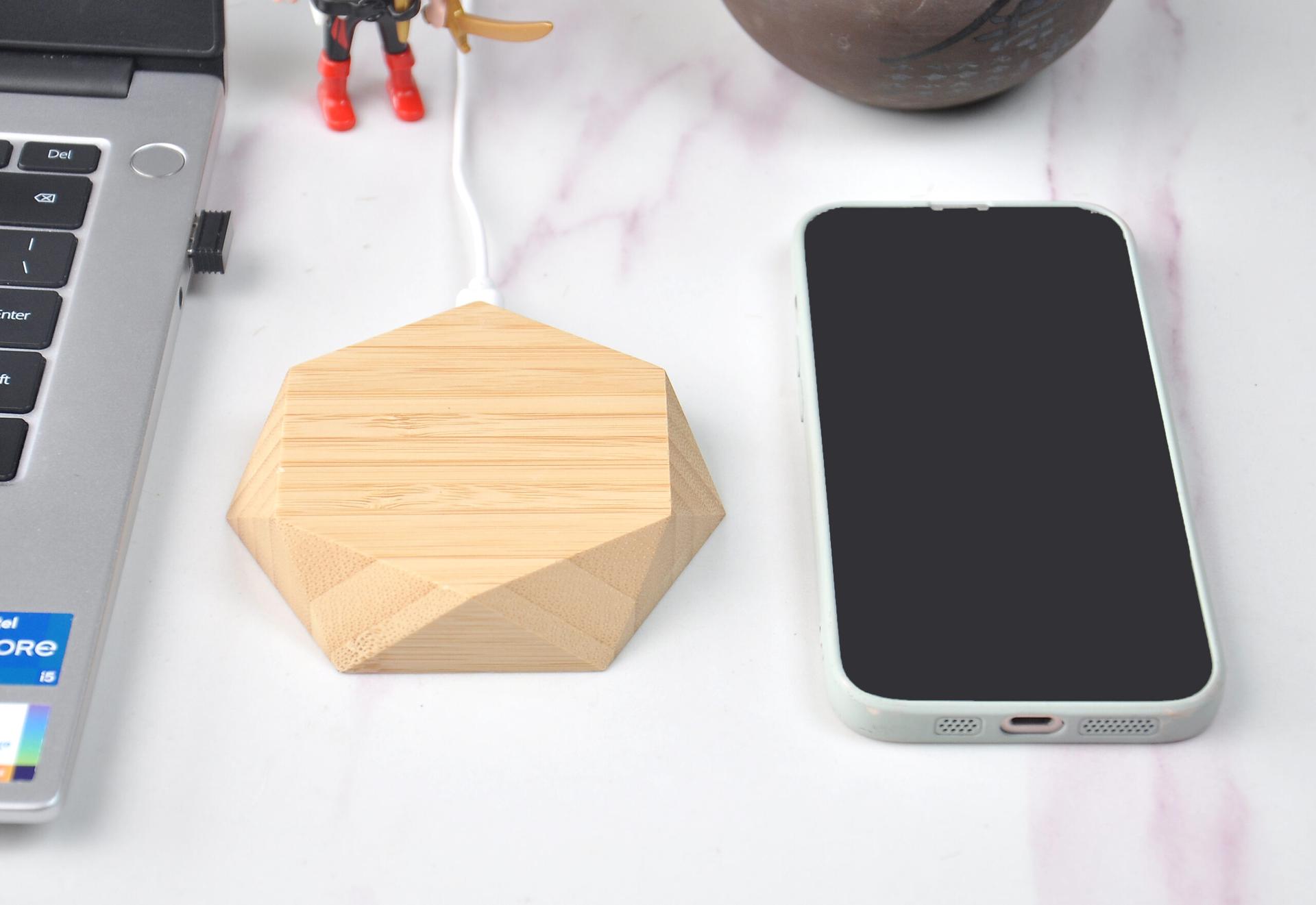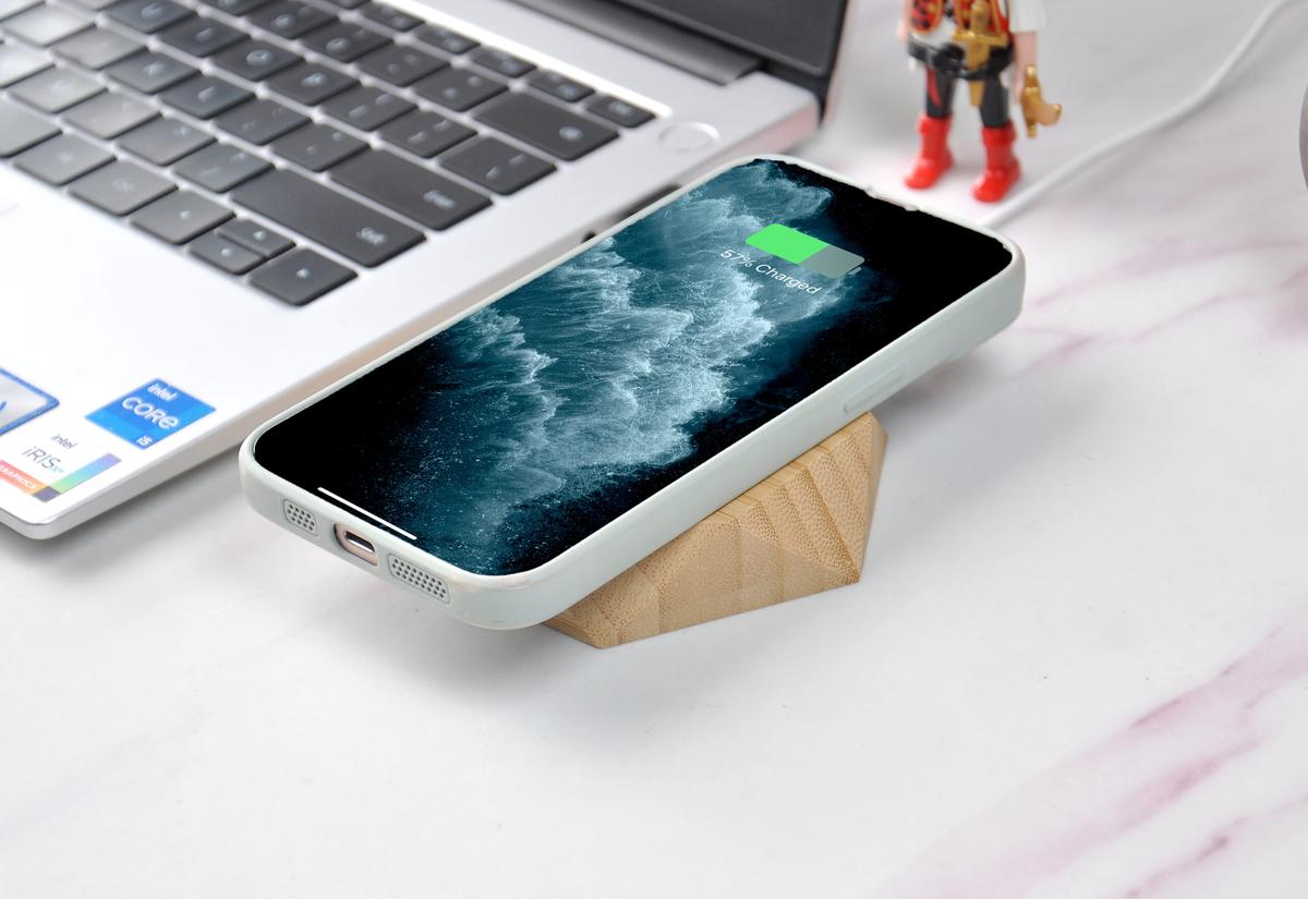 Chargeur à induction rapide 15W en bambou certifié FSC.