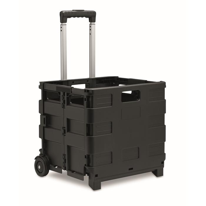 Chariot porte-marchandises pliable en PP avec poignée en acier. Charge maximale : 25 kg.