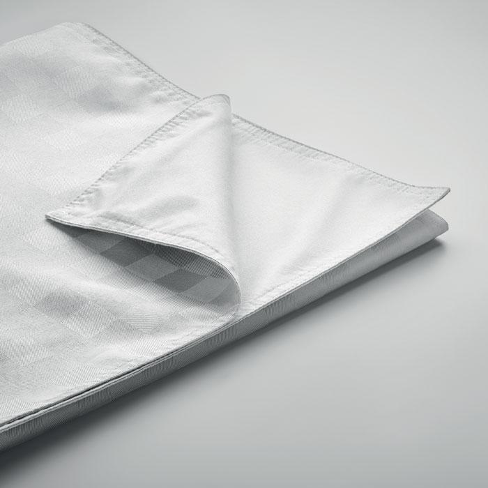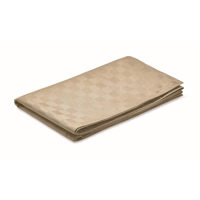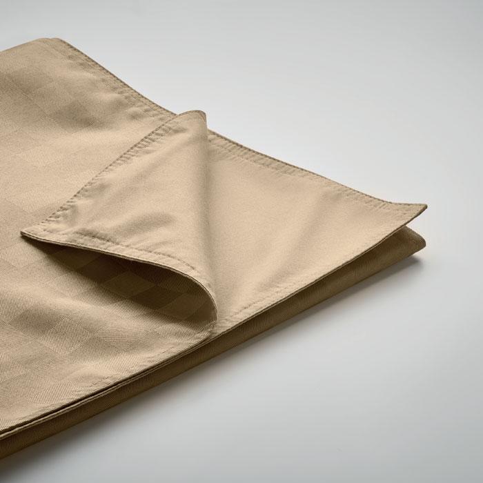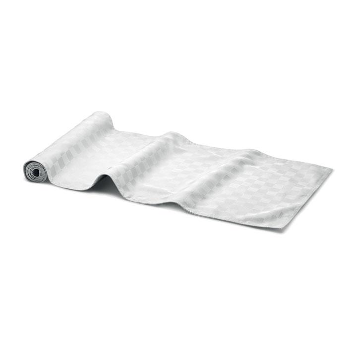 Chemin de table en polyester 185 gr/m² avec microfibre et doublure en non-tissé avec finition déperlante sur la face avant.