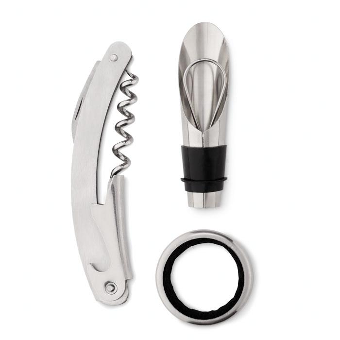 Coffret en forme de bouteille de vin comprenant limonadier, verseur et collier anti-goutte.