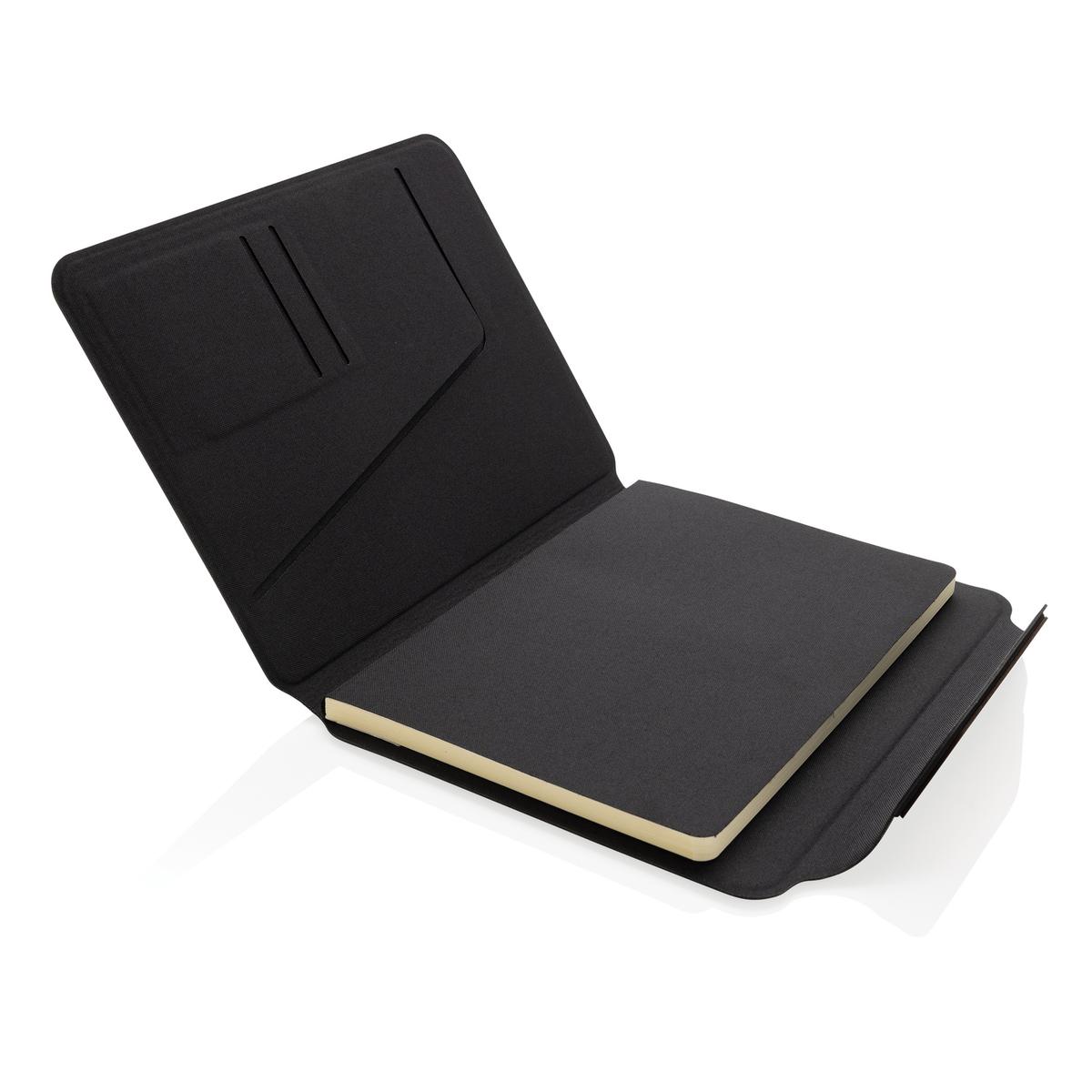 Le porte-documents A5 Teri en noyer et en rPET AWARE™ est l'alliance parfaite du style professionnel et de la fonctionnalité. Fabriqué en rPET avec le traçage AWARE et un emblème en bois de noyer pour plus d'élégance. Il est doté d'une fermeture magnétique qui permet de ranger vos documents essentiels en toute sécurité. À l'intérieur, vous trouverez deux fentes pour cartes de visite et une pochette pour documents A5. Le carnet A5, fabriqué avec du papier FSC® mix, comprend 64 feuilles (128 pages) de papier ligné de couleur crème. Le porte-documents est emballé dans une boîte cadeau FSC® mix Fefco 427, ce qui en fait un choix idéal pour un usage personnel ou un cadeau. Fabriqué en polyester recyclé avec le traceur AWARE™. 2 % des recettes de chaque produit vendu avec AWARE™ seront reversés à Water.org. Sans PVC.