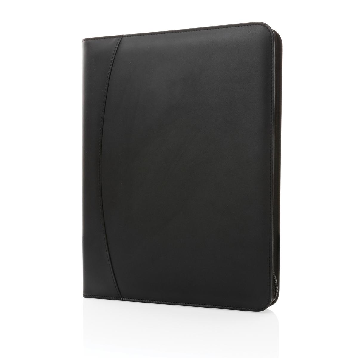 Conférencier technique de luxe avec fermeture à zip fabriqué avec des matériaux recyclés certifiés RCS (Recycled Claim Standard). La certification RCS garantit une chaîne d'approvisionnement entièrement certifiée pour les matériaux recyclés. surface lise pour un aspect chic. Bloc-notes ligné en papier recyclé 64 gm/2 contenant 20 pages. A l'intérieur, il y a une poche téléphone, un support de téléphone, un passant stylo et 2 fentes pour cartes de visite. PU recyclé et certifié RCS. Contenu recyclé total : 14% sur la base du poids total de l'article. Sans PVC.
