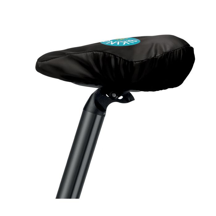 Couvre-selle pour vélo en polyester souple avec galon en caoutchouc élastique.